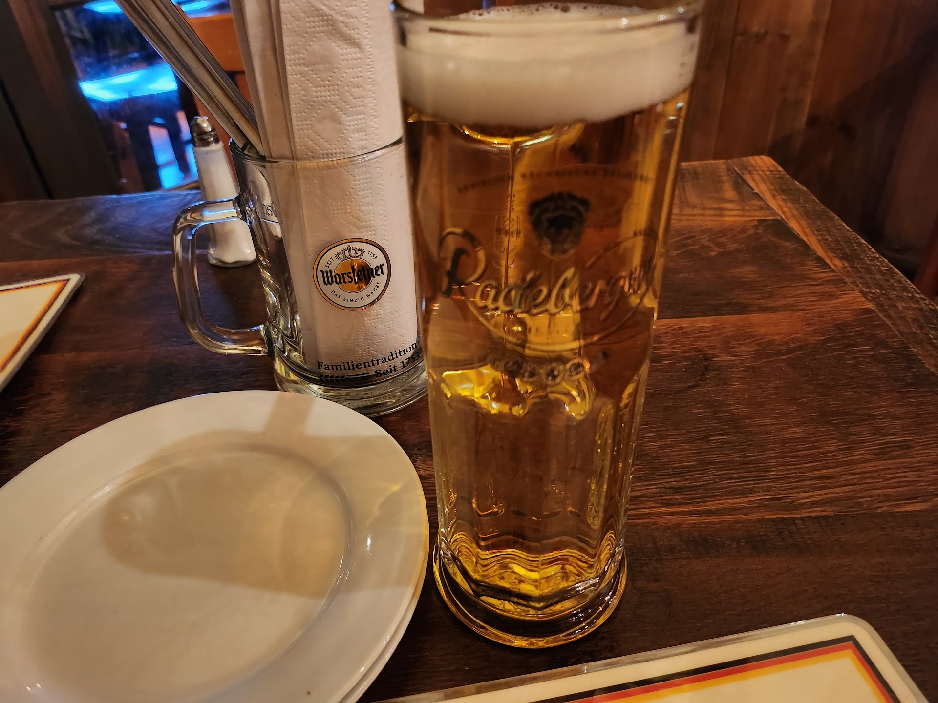 As the waitress came to take our drink orders, we asked for a beer menu. We were told they did not have one, and we could go downstairs to view it on a board. How a German restaurant does not have a beer menu, I don't know. A member of our party had to go back downstairs and to take a photo of the menu. As I previously said, this is an expensive restaurant - our meal cost $600 - that's with 3 kids. This isn't McDonald's where you go to the counter to view a menu. I don't want to complain about our waitress, as she seemed very sweet and was definitely overworked (this is more on management then anything else in my opinion, as I think more could be done in terms of the wait staff being able to serve upstairs patrons more efficiently).