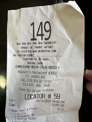 If you want my opinion: if you're going to a mcdonalds, drive the extra distance and go to the location in downtown Saratoga Springs, the service and food is MUCH better based on my...