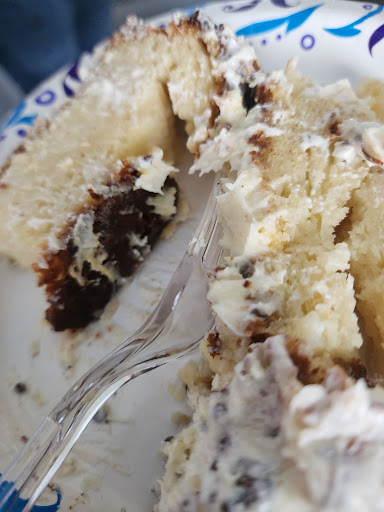 The cake however, was not so much. I ordered 3 days ahead so there was time for my order to be prepared even though I was told they only required 2 days notice. The cake was not prepared ahead to cool properly and therefore was still hot and shifted during transportation and the entire top of the cake fell off in the box it was a mess! I had to push the top back on and all of the filling was in the bottom of the box. Ok, well looks are not everything it will still taste good, except the bottom of the cake was burnt, black! Not a nice golden brown it was black! We could not even cut it with our fork, it was so disappointing. Good thing we had also purchased cupcakes from Walmart, most people ate them and the portions of cake I had served went in the trash, such a waste! We ended up brining the rest of the cake to a party where everyone was drinking, they probably didn't notice the difference. I am giving 3 stars only because the pizza was good, other than that they...
