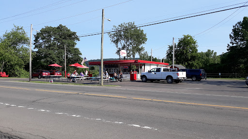 Read moreAfter spending the day in Corning recently, we were looking for a drive-in restaurant for dinner on the way home. After finding the listing for Emmie's, and reading the reviews, it sounded like a perfect ending to our outing. After placing our order (a grilled chicken sandwich, an order of (3) chicken tenders, an order of fries, and a can of Pepsi) at the order window, we found a place to sit at a table out front. Maybe six picnic tables with sun umbrellas on only half of them, and some smaller tables for the kids. Our food was ready approx 20 minutes later. All of the food was served up hot, everything tasted good, and nothing was overcooked. (Sorry, no photo of the grilled chicken sandwich). Our total bill for food and beverage totaled a bit over $19. We felt that was a reasonable price as we'd likely pay more at a walk-in, sit-down restaurant for the same food. The young girl who took our order at the window was friendly, patient, and very accommodating. Nothing fancy here, just good food and reasonable prices. Sadly, we didn't try their ice cream on this visit. Parking was more than ample. *The one improvement that I'd suggest is to install sun umbrellas on the remaining large picnic tables because some shade from the sun is really needed on hot, sunny summer days like when we visited here. Other than that, a really good experience beginning to end with nothing negative to report. We'd recommend Emmie's and we would eat here again. Thanks...