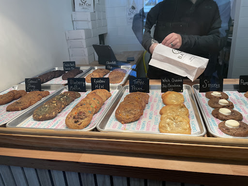 The scent of these cookies blasts you like air conditioning in the summer - wow! Incredible smells and really good cookies, not too sweet. Loved the blueberry muffin and their white macadamia and seasonal s’mores looked great, coming back for those. Fresh, soft and chewy, with tons of flavors, and even offer ice cream sandwiches with ice cream flavors like Cookie Monster and Jolted Cow. There’s some indoor seating with a table by the window and the owner is very kind. Welcome to the hood and see you...