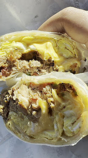 I went with two picks: • Brisket Egg & Cheese — house smoked brisket, scrambled eggs, American cheese on Texas toast. Super buttery and cheesy. My only critique is the brisket was sliced a little too thin, which made it tougher to bite through in a sandwich. • Breakfast Burrito — house smoked pulled pork, scrambled eggs, American cheese, pico de gallo wrapped in a tortilla. This one was the winner for me. Smoky, spicy, and loaded with flavor.