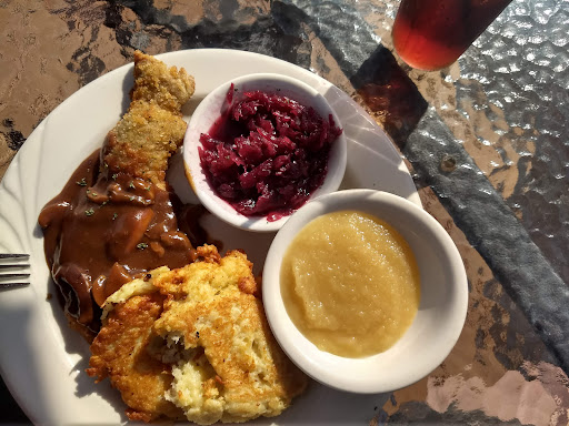 Read moreWe were not impressed. This is why. Pros, great location by the lake, large deck, beautiful views. Staff attentive and prompt. Cons. Salad bar was pretty much low on everything, the wooden salad dishes were disgusting. I picked up at least 10 dishes before I felt that I had a clean dish. The Wiener Schnitzel definitely was not veal as listed on the menu. Potato pancakes had no taste, gravy was fresh out of the package. Cabbage right out of the jar, nothing added to make it taste unique or give the impression someone gave it a taste before it went out. Pretty much freezer, jar, to frier, pan and not much more. I know when you have a busy restaurant you need to get food out, but with all the great reviews, I felt this dish was not worth it. My partner had a club sandwich with fries. Way too much mayonnaise. Otherwise ok. Fries were good. We might be back, we might not. It's usually the first impression...