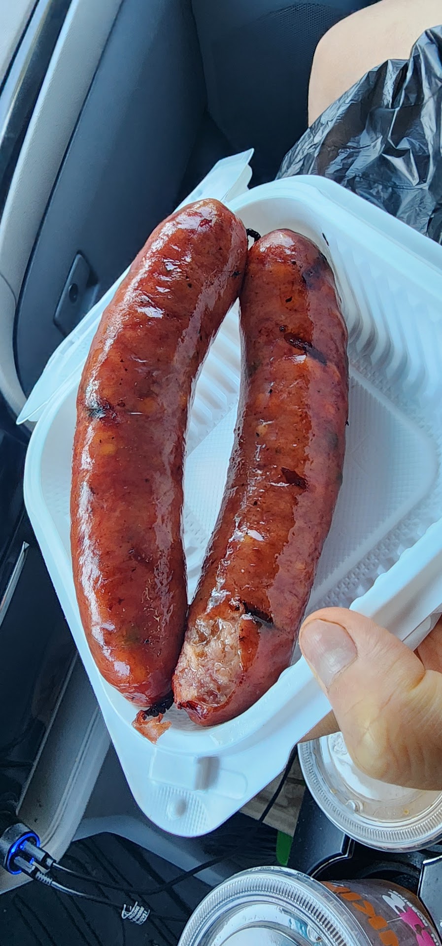 Read moreSo we had ordered the sausage, burnt ends, and 2 samplers(pulled pork/brisket/2 ribs). The burnt ends surprising not bad felt had a chicharon texture that was just placed into a soup. So still a crunch but soft enough where the crunch doesn't hurt the mouth. A little sweet from the BBQ glaze bit overall rank 4 out of the things we had. The pulled pork was a little dry and a little on the sweet end needing the supplement of BBQ sauce that had to be requested so 5th. The ribs were on the lean end light but also needing the extra BBQ sauce to support it so 6th. We had two distinct pieces of brisket, one where it only had lean meat and we really needed to stab with our fork to pick it up, very dry and very chewy ranked 7th. The brisket with some face rendered on it was pretty good the bark gave it a nice flavor with it being fall apart to the touch of our plastic forks, will say BBQ elevated the taste rather than needing it ranked 3rd. And by golly the sausage was fantastic, the skin was bouncy and crisp on the bite, the cheese inside spurted and oozed from every bite, very well seasoned with a bit of heat from the jalapeño. Bite was so good, I found myself closing my eyes immersing in the harmony of flavors. Will say though when we ordered it was nice and hot, if it was cooler it may have come off too creamy and greasy. So it deserves rank 1. Sausage so good we had to get a second one after finishing our plates to reconfirm. It...