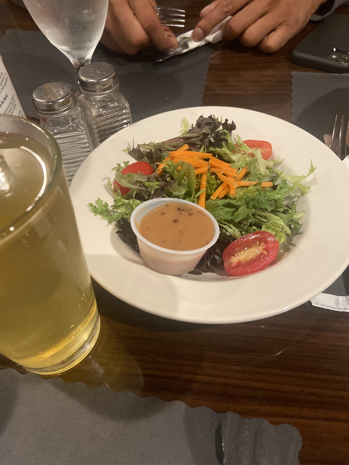 House salad was standard and was simple but executed well. The shrimp apps were decent, seasoned well and fried hard. Half were tempura and the other half coconut. I wish we had one more of each.