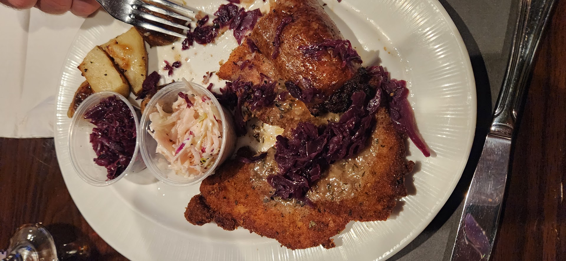 The Beet Salad couldāve been better reimagined. Just looked and felt like it was just abruptly thrown together. Big pieces of lettuce with tons of beets (very tender) and various sizes of goat cheese.