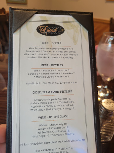 Ā Ā Ā Read moreWe went to Friends for a late meal after working a Market nearby and although the kitchen was about to close, our server was absolutely wonderful and took care of us and made sure our orders were taken in time. My burger was absolutely delicious and perfectly cooked, the service was fantastic and the energy was wonderful. You can tell everyone loves this spot because groups kept pouring in for drinks and socializing. High volume level with lots of laughter and friendship. My wife left her debit card there accidentally and when I called to retrieve it the next day, prior to opening, the staff were wonderful, pleasant, polite and thoughtful. I canāt say enough good about this place and the people. Iāll definitely stop in again next time...