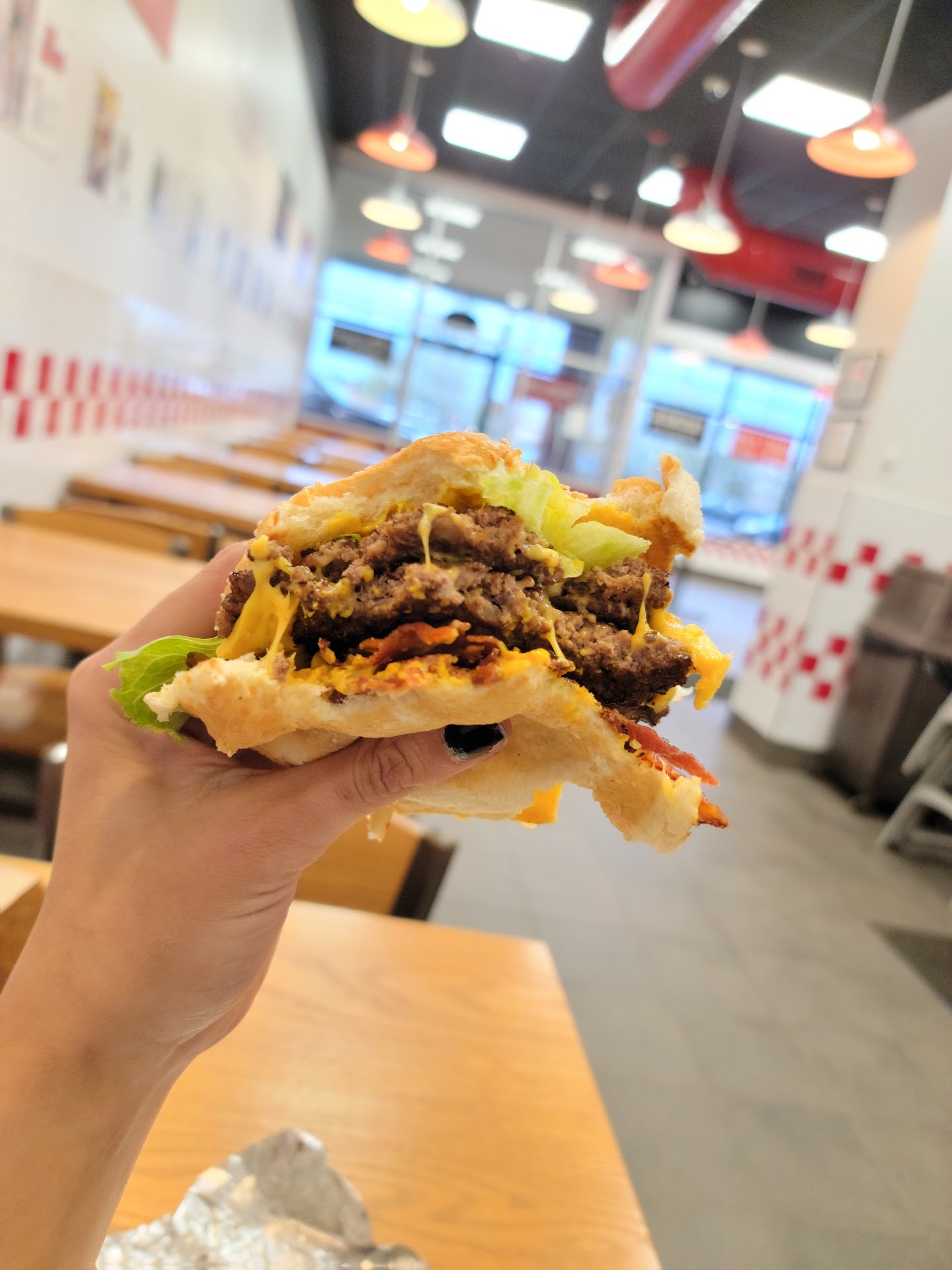 Read moreThe burger has changed since the last time I was at this chain. I got a bacon burger and the two patties were paper thin . I don't believe that the two burgers were as big as the single burger I remember getting. The burger, fries and drink was definitely not worth 20 dollars. I know minimum wage went up a couple of bucks, but to charge an extra 6 or seven dollars for the same thing that I used to get 4 months ago is absurd. Five guys burger is as thin as Wendy's or McDonald's. There are several burger restaurants in the capital district that still serve a decent sized burger. Sure their prices have went up some as well, but at least you still get a...