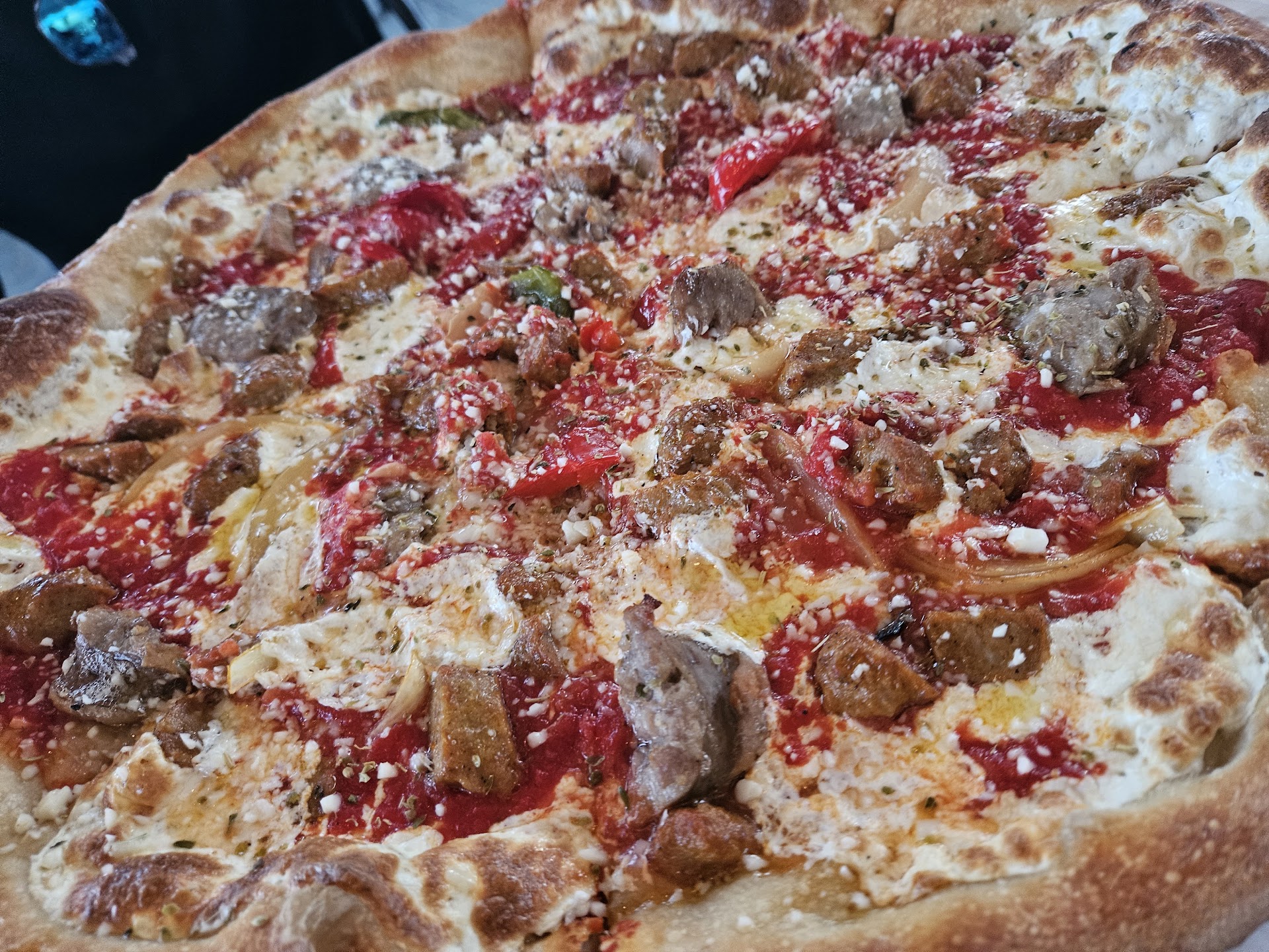 Tonight we ordered a pizza, boneless wings, and mozzarella sticks. Delivery driver shows up, hands me the box and wings. I get in the door and notice the side of the box is soaked in grease. I open the box and the entire top of the pizza has slid off to the left side. I yelled to the kid to get back up to my door.