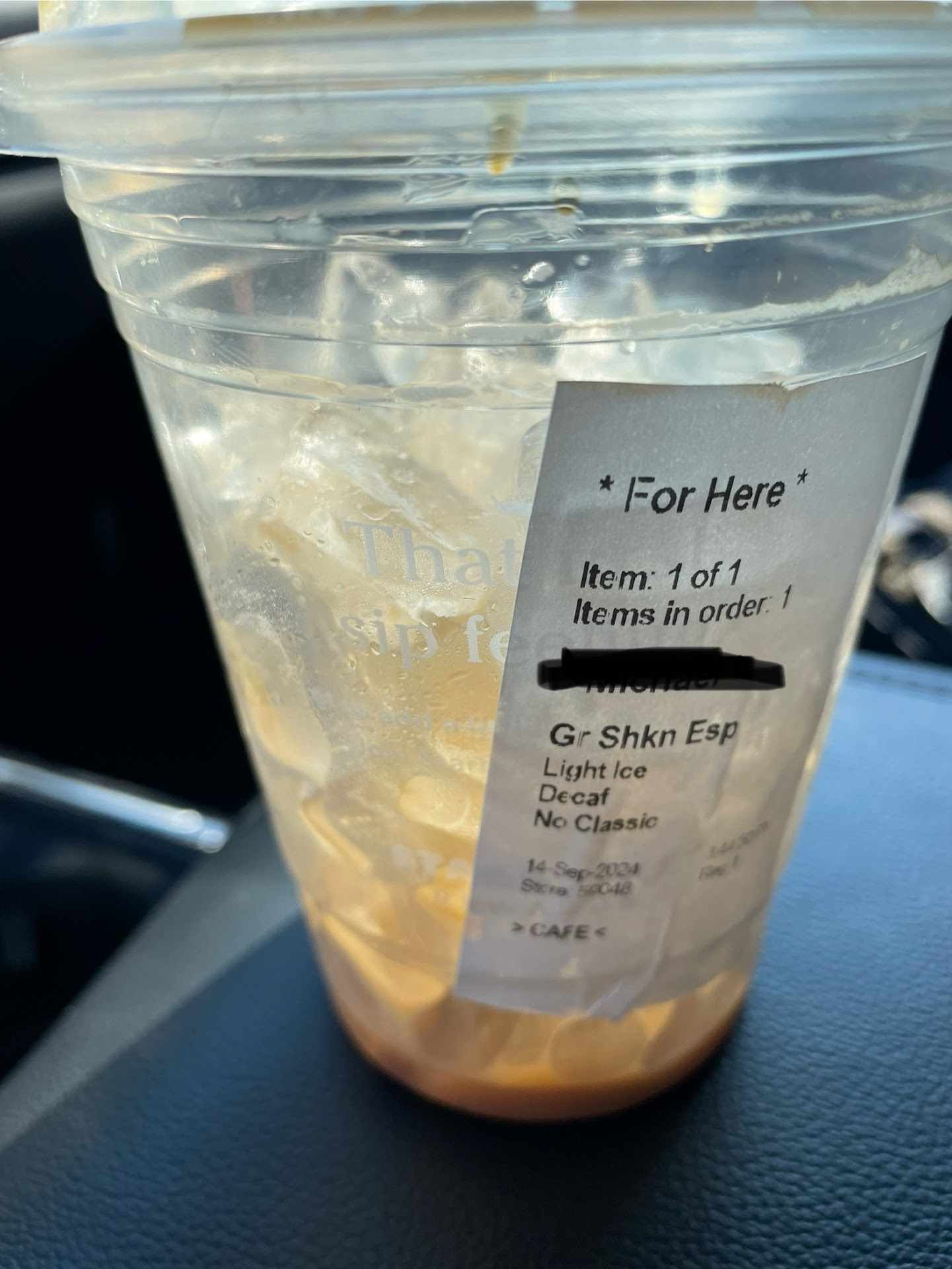 Whoever was taking the drive thru orders at 253 pm today 22Nov2023 was rude, un professional and nasty. My cup had chocolate all over it , I order a strawberry refresher. When I brought it to her attention she rolled her eyes. I also was left waiting for abt 5 mins and there weren’t any cars in front of me. It was a white woman with brown hair and something that looked hand written...