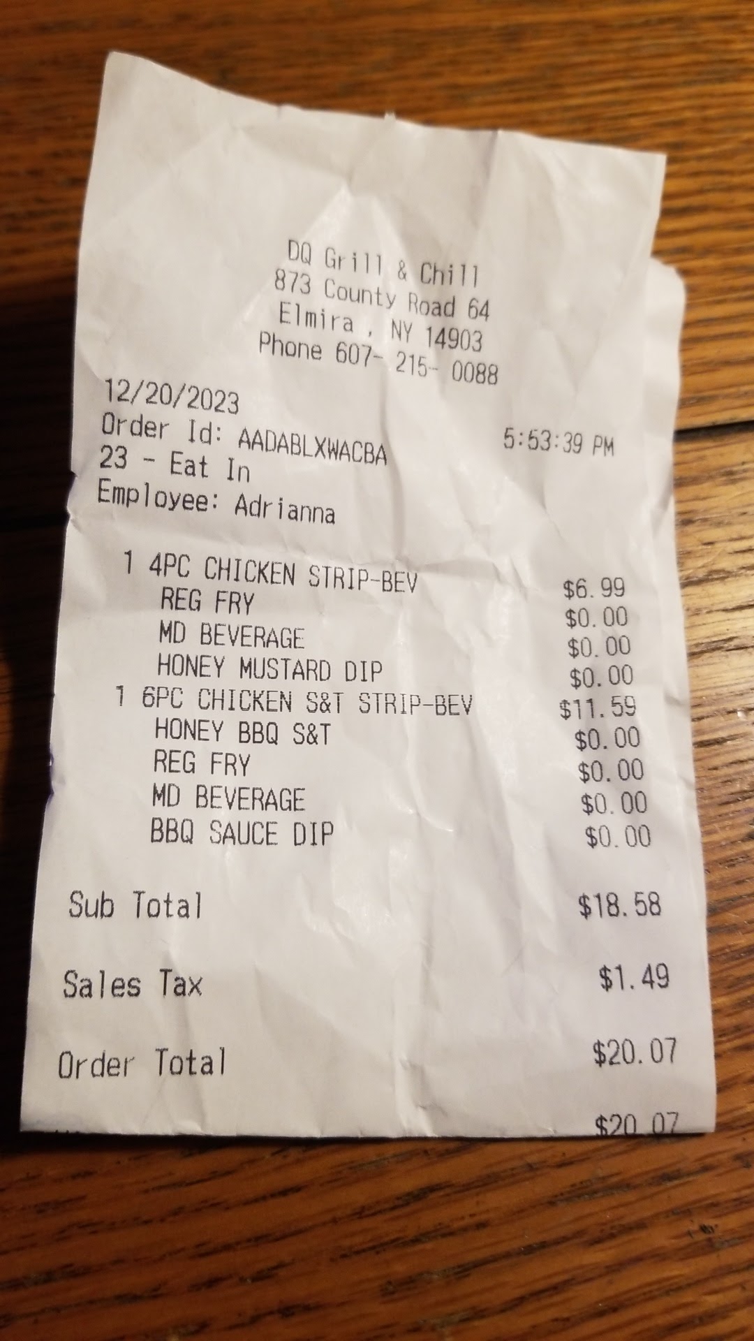 Read moreAll in all this place was overrated and especially dirty for being a brand new store. The items that they sell are nothing more than things you could buy at the grocery store and make yourself. The burgers are average Frozen burger patties made into hamburgers and cheeseburgers the chicken strips are breaded chicken strips that you would buy in any Walmart or Big box store and the fries or nothing good at all. The service was horrible and the people working there were literally walking around giving away free food because they couldn't find the people who ordered the order they were carrying around for 5 or 10 minutes. The bathrooms were dirty and stunk terrible for being a new store. The people carrying around the orders need to cover their mouths over your food and stopped carrying around the items of food like they're carrying around a phone with a phone call for a person holding it out in front of everybody asking if it's theirs. I didn't think the prices were good or even reasonable at this place. At one point my party considered getting up and walking out to walk across the parking lot and go to Taco Bell because the food service and prices were that terrible. For being a new store I would not recommend Dairy Queen and in general wouldn't recommend a Dairy Queen to my kids even starving. Save your money and hit up something well-known with standards like McDonald's, Burger King, Pizza Hut, Taco...