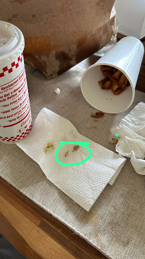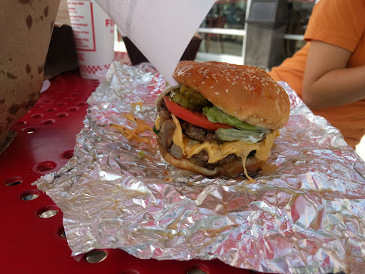 My friend kept bugging me to go here, and wouldn't you know it, it's probably the best burger place in the area. Burgers are really good, but expensive (especially if you're like me and are never satisfied with just one burger), and they have one of those soda machines that has a ton of flavors (only one though, there's a second one but I've never seen it operational). There's also a corkboard where you can make a little drawing using the provided notecard and colored pencils. The chairs, despite looking like wood at first, are metal, and it continues to bother me every time I think about it. Very lucky that I haven't had any bad experiences here, the only reason I avoided this place for so long was because of a bad experience I had as a kid at another Five Guys location while I was ill. I saw the review of the... fingernail burger, and I figured I should at least mention that nothing like that has happened here to me...