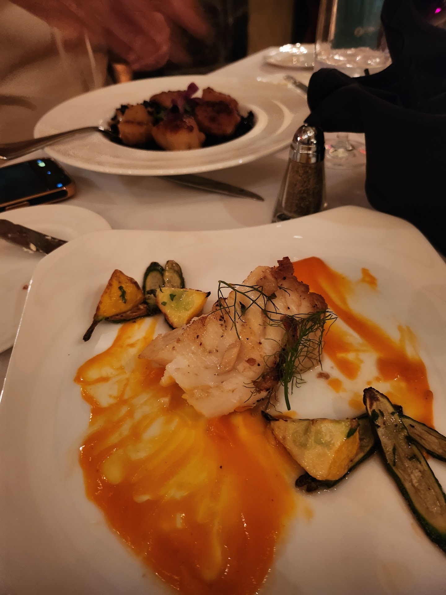 Read morethis place has plenty of room for improvement. For their prices they need more attention to training and detail. Last nights service pace was spotty. So much that i missed calling for my second drink. Onion rings were heavily coated. not our style. No new forks after the onion ring course. The kitchen split Caesar salad had fresh anchovies on mine only, as requested. The 2 (two) small 3/4” pieces of filet were lost to my palate. Food was well presented, though too long after our salads were finished. I’m not sodium sensitive but the scampi sauce the scallops were on tasted too salty to me. There were butter plates and knives on the table. They remained empty the entire time.Bread never offered or brought. Maybe the $172 before tip did not qualify us for complimentary bread. We did not request it because we would not have done more that barely taste it anyway.. Our 2 person table was tippy. We reported it to the hostess. Such things as a tippy table suggest this place needs more oversight. We will not...