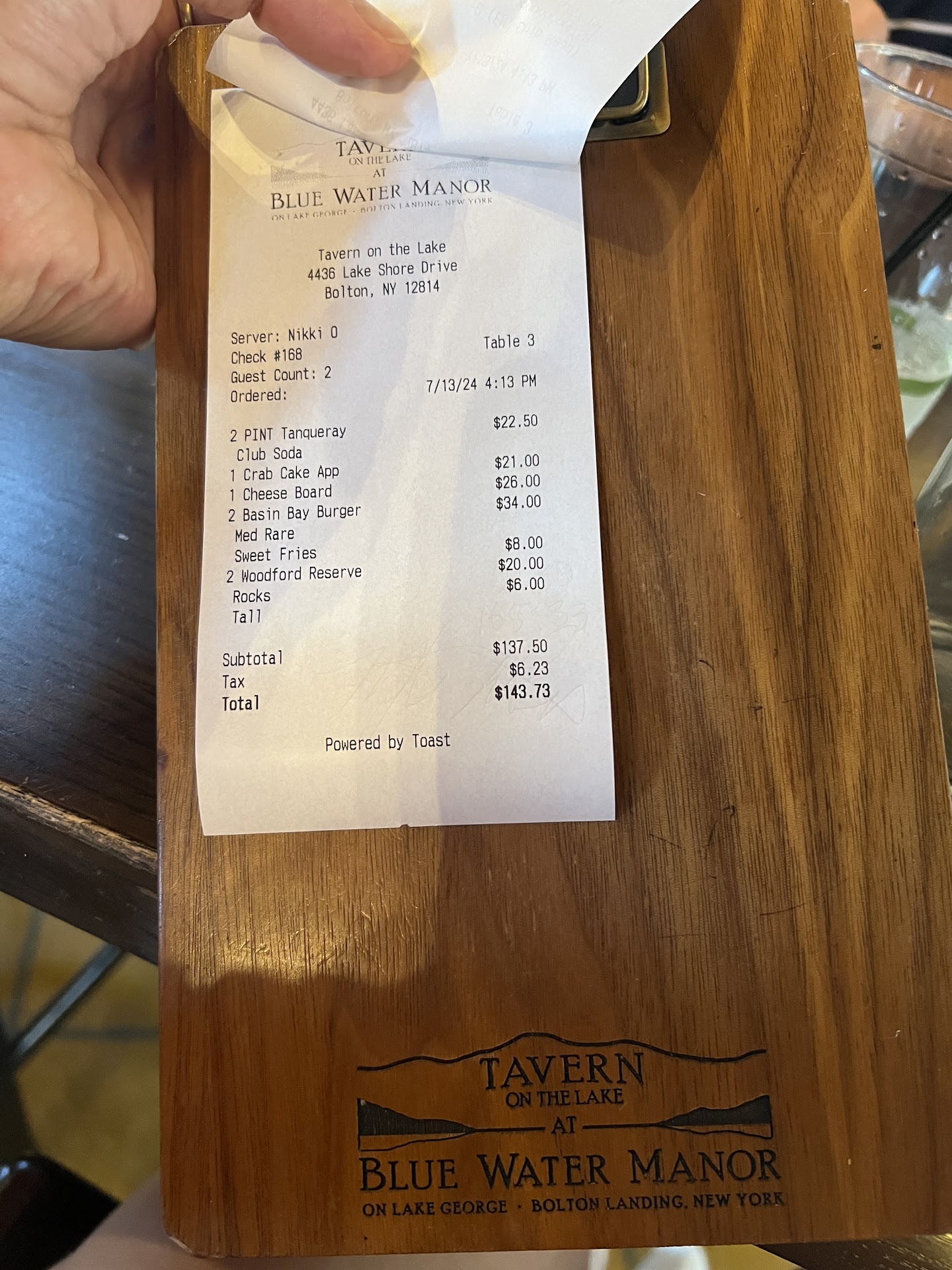 This is a really towny place, and most of the regulars are kind of drunk. One local was laughed off after forgetting her phone at the bar- but she didn’t forget her tie-dyed beer bottle cozy, though. The waitress didn’t say “have a good night” or “bye”, but dropped the check in passing without even looking at us.
