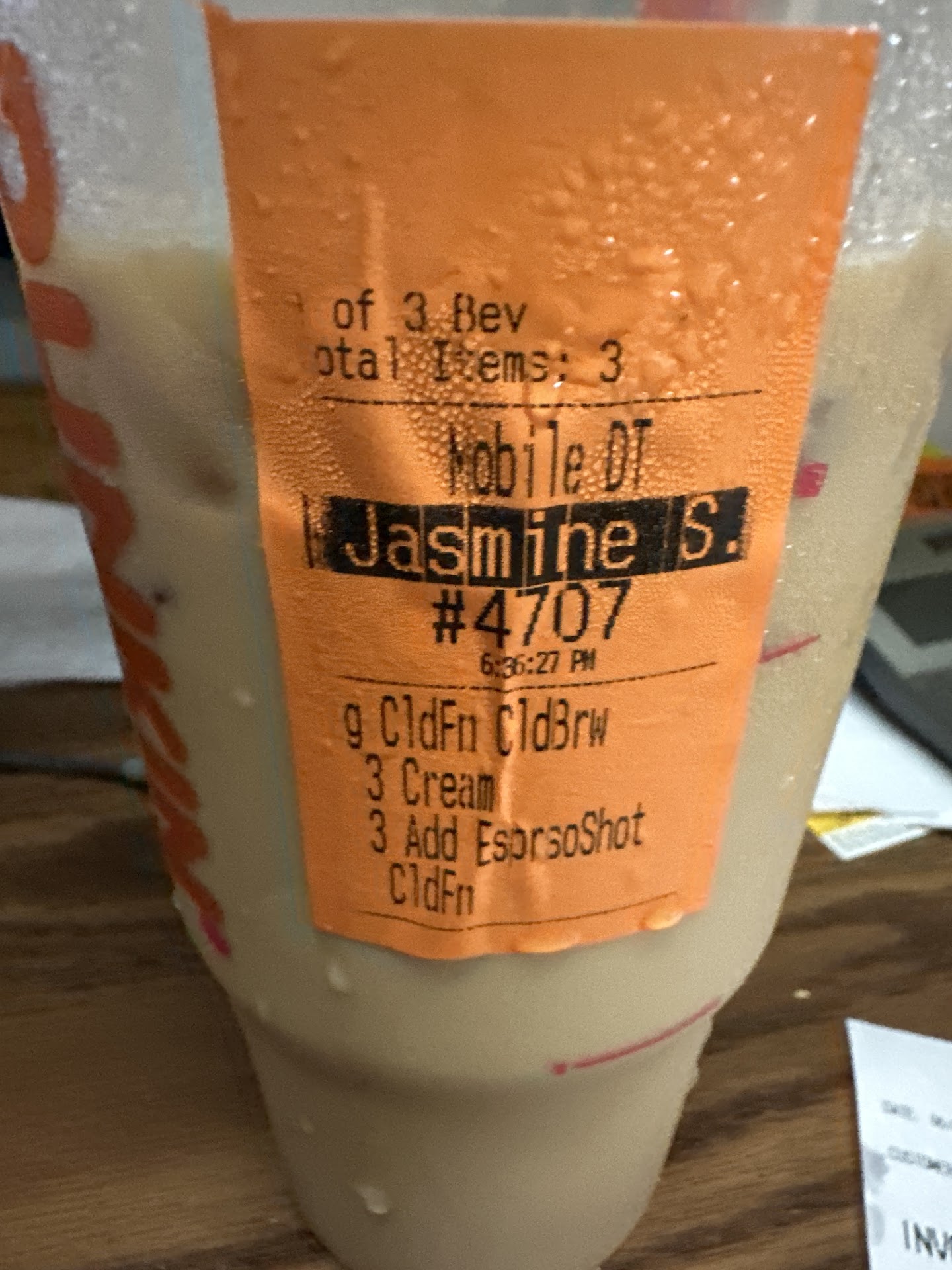 We were from out of town. We ordered one large iced coffee and one large hot coffee. We get thru the drive-through and we get told what the amount was which seemed high but we gave the credit card and then they proceeded to try to give us the one large iced coffee and a large cold brew. I informed the gal that we didnāt order that and they apologized and told us to pull ahead and they would bring it out to us. Well then my husband and I asked when they were going to reimburse us because obviously I had already paid for the order and I was not going to pay for a large Cold brew when I didnāt order that. She became flustered and the manager came to the drive-through window being very rude and asking what we needed. We asked again when we were going to be credited on our credit card for the difference of the coffee and she basically said would a five dollar coupon make you feel better. We then said OK sure. She then handed it to us and told us to pull ahead and our coffee would be done shortly. Nowhere did we imply that we wanted to be reimbursed for their mistake. All I wanted was to pay for the coffee that I was receiving. Manager...