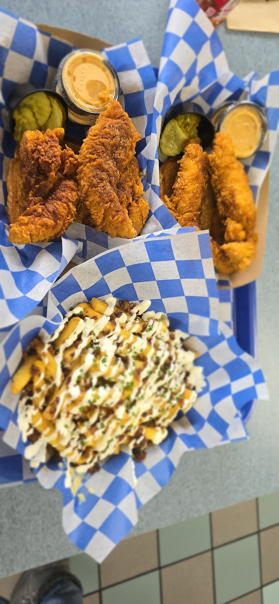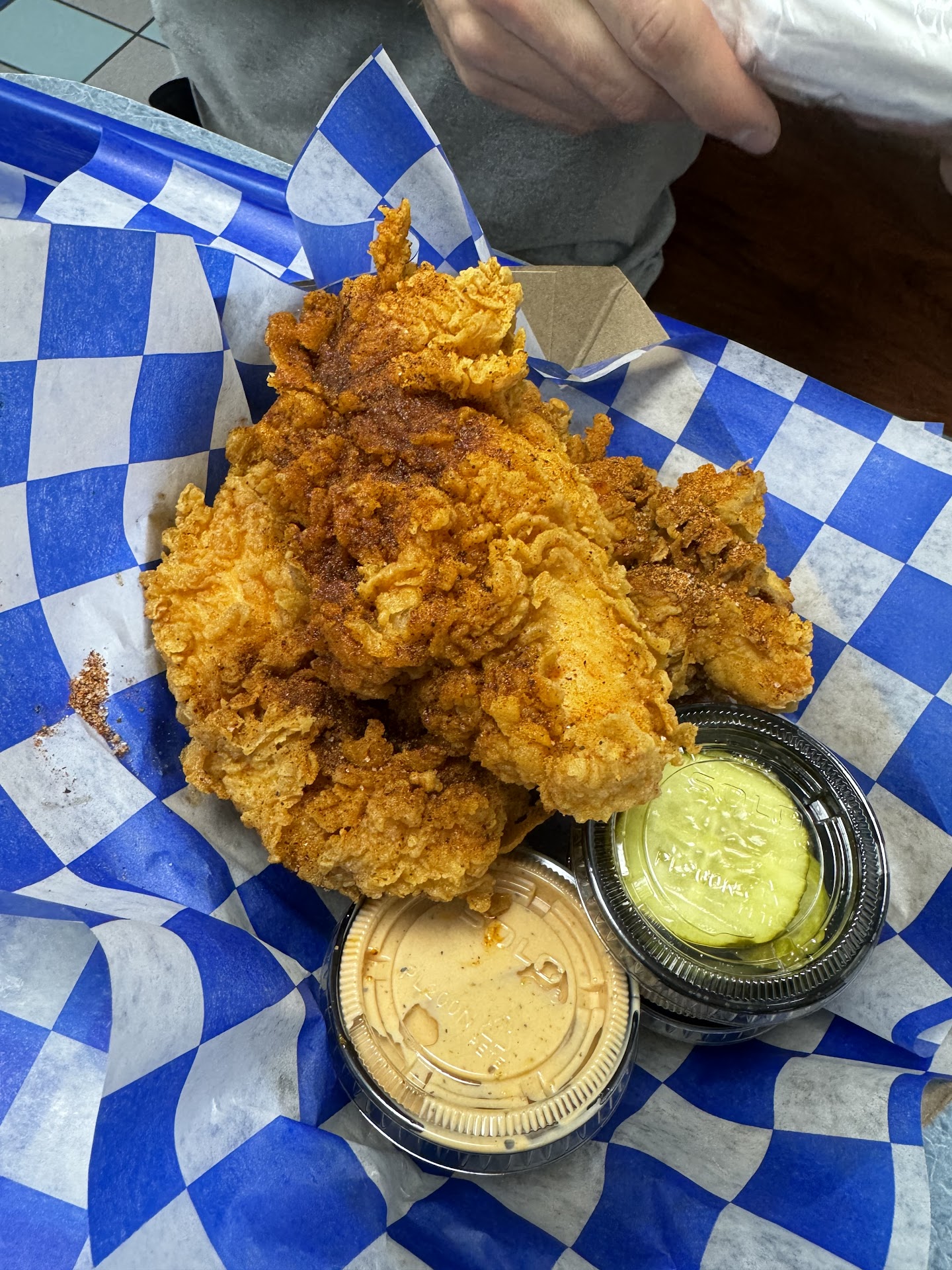 Read moreThis is hands down the best chicken joint I've ever been to. My fiancé and I have come here maybe once every other week on average for the last few months and have not been disappointed. Biggest take away is just the size of the chicken tenders you get, they're a good size. I was kind of surprised the first time coming here and seeing them because I've never been to a place that serves tenders of the size they have. I've not tried everything on their menu but I've had the regular tenders, the Nashville tenders (all 3 levels) and the Rileys Chick sandwich. I was not a huge fan of the sandwich, the sweet onion jam was not for me but I did not let that affect the 5 star food score I'm giving this place. The chicken is perfectly cooked every time and has the right amount of seasonings, making it well worth the price. If you're trying to see how the chicken from here compares to other places that serve tenders, there's no comparison. Most places just drop the tenders in the fryer and overcook them or already have some made. The tenders here are cooked to just the right amount of tenderness and are made to...