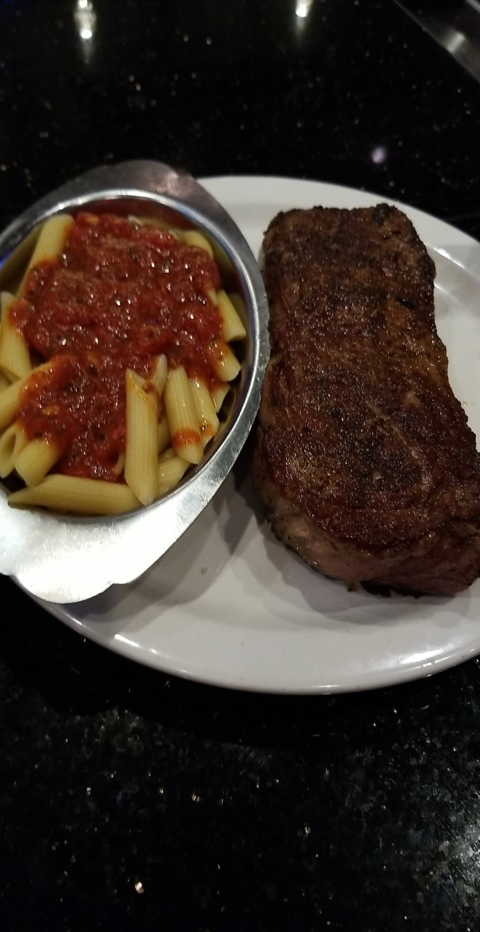 Very nice large and open family Italian restaurant. The design and feel made one feel as though you were in a smaller town where the staff knew many of their patrons. Unfortunately, being from out of town the service was slower and did not get things that were ordered. I waited for more than 40 minutes after recieving the menu for staff to inquire if I was ready to order, which I could have ordered in 5 minutes after looking the menu over. Bar tender had showed me the happy hour special foods and so I ordered 2 of the large shrimp for $1.99 each with my meal and never recieved these. The salad and main course (NY Strip) came out at the same time. Which then the steak had to sit while I ate my salad. The steak had very good flavor and was prepared rare which was perfectly cooked! But the steak came on a very small plate which made it very challenging to cut without knocking the pasta bowl off the plate. The food was good the portion of pasta for a side was lacking in quantity. It is a very nice atmosphere. But, the service like many other places leaves room for improvement post shut downs of the pandemic. Customer service, work ethic and proper etiquette are key to any fine Italian restaurant. I would recommend trying this restaurant.