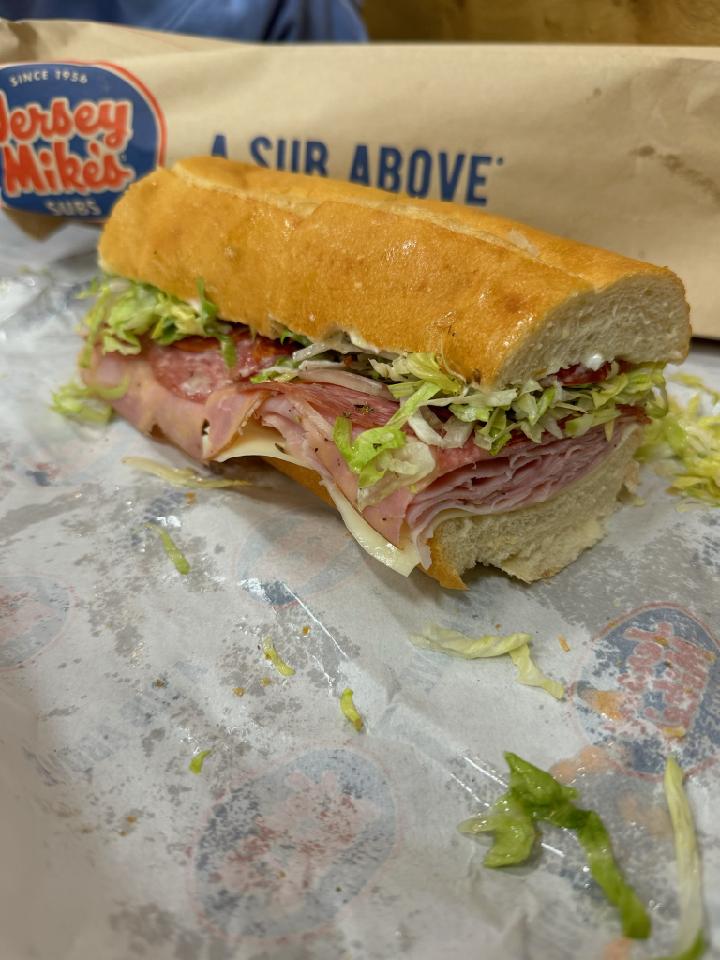 Jersey Mike's is bar none my favorite sub place. I think it blows Dibella's way out of the water, with fresher, softer bread, fresher ingredients, and the contents actually stay on the bread better than any sub roll that's not cut all the way through.