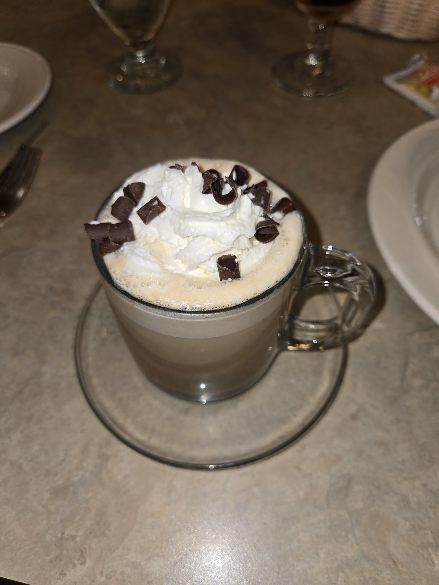 I reiterate that we DID NOT EXPECT ANYTHING! Don’t insult us with giving your guests a tablespoon of whipped cream to celebrate their special day. Never again!! We won’t ever go back!! It’s too bad because we have frequented this restaurant for many years. And by the way, a cup of coffee or tea is...