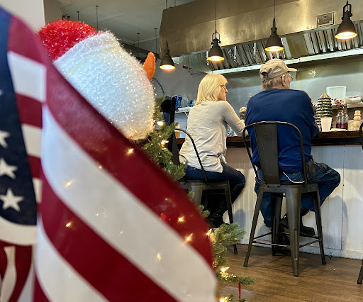 The café is adorned with delightful Christmas decorations that evoke a sense of nostalgia and community spirit. The twinkling lights, wreaths, and ornaments create an inviting and cheerful ambiance that makes you feel right at home. It's the kind of place where you can almost imagine Santa Claus himself making a stop to soak in the merry atmosphere.