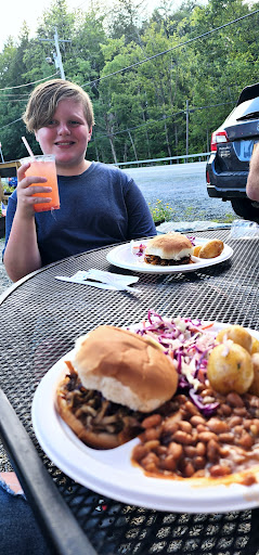 We drove from Glenville to try out this place because I heard the food was delicious...let's say this place did not disappoint! We went on a Saturday night when they had a dinner special and live music. We got the pulled pork dinner and it came with little herb buttery potatoes, coleslaw, baked beans and sweet corn. This was the best BBQ take out we have had in a long while. The pulled pork was amazing and tender...the sauce was to die for, (I wish they sold it by the pound to take home) the baked beans also had some pork in them which was also very yummy. They give you very large portions...I was full and happy for sure! It was nice eating outside and listening to music from the band playing there. Everyone there were super nice, helpful, and friendly! They definitely treat you like family and make sure your time there is enjoyable. My husband and son got some ice cream on our way out and my son said his banana ice cream was his favorite! It's totally worth the drive and its a nice ride! Great experience and we will definitely be...
