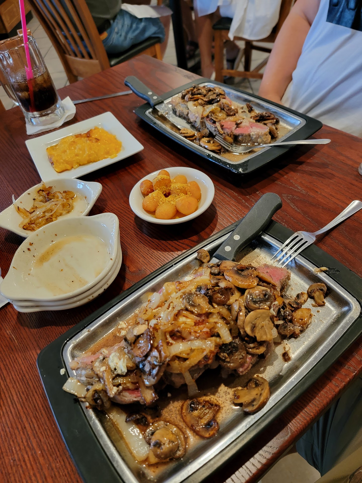 Read moreWent there after an EXCRUCIATING twenty minute wait for drinks at another local establishment... Our service was very prompt and attentive. I ordered the Philly CHEESE steak sandwich and asked for mushrooms on it as well with a salad and fries. Salad was wonderful, nice crisp lettuce and toppings... My sandwich came out half cold with what appeared to be one slice of cheese cut in half draped across an extremely dry heap of chopped beef and very few onions or peppers and seemingly no mushrooms. Our server came back within the two minute check as expected (extremely wonderful server etiquette)... I asked for mushrooms. She came back with a generous side dish of mushrooms and explained the mushrooms were chopped up in the sandwich already. I took the juices from my boyfriends prime rib to add a little flavor along with moisture to the sandwich. Still was very bland. Added salt and pepper which remedied the personal preferential shortcomings... But by that time I was already displeased and unsatisfied. Three bites in only due to the fact I was trying to "fix" it, and asked for a Togo box. My significant others prime rib was AMAZING.... and the French fries were hot and crispy. Not super satisfied with the experience there and with other venues in such close proximity, there's a very high chance we will not...