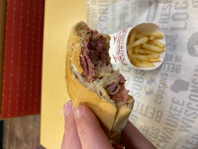 I had an in-store credit to use for a free sandwich and curds, extended to me via email by the store's general manager after I received the wrong sandwich on a previous visit. I intentionally went early today, at 11:20 am to avoid the noon rush, to try to redeem this credit and also to purchase another sandwich.