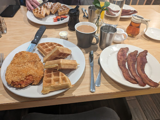 Read moreSo I came here with my dad per the recommendation of my twin brother who says this is his favorite breakfast place. The food is good, but I was hyped up to believe it was life-changing and it's not. The drinks we had were great (mimosa and coffee). Dad ordered Belgian waffles with berries and bacon, I ordered chicken and waffles with bacon. Both my dad and I agreed the bacon was not good. It tasted overcooked and just wasn't great. The waffles were good and very light. I really liked the chicken; it was cooked perfectly and the breading was very good.