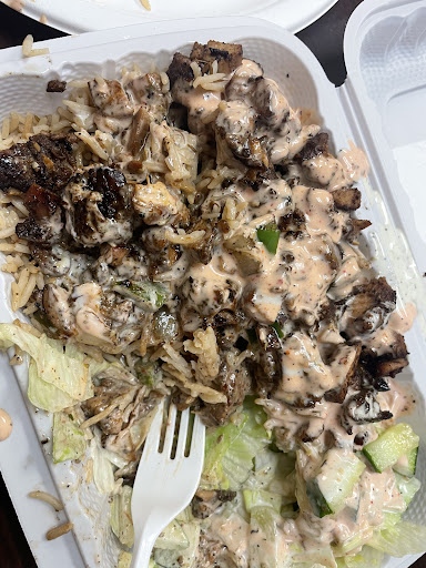 Luckily, I didnât get sick, but the food wasnât even good. The cheese fries are just bland frozen fries that they cover in half a bag of Aldi brand cheese and melt, which then turns into a rock as soon as it cools. The pita comes out cold and stale, and the fillings are skimpy and donât seem fresh at all. Even the sauces donât have much taste.