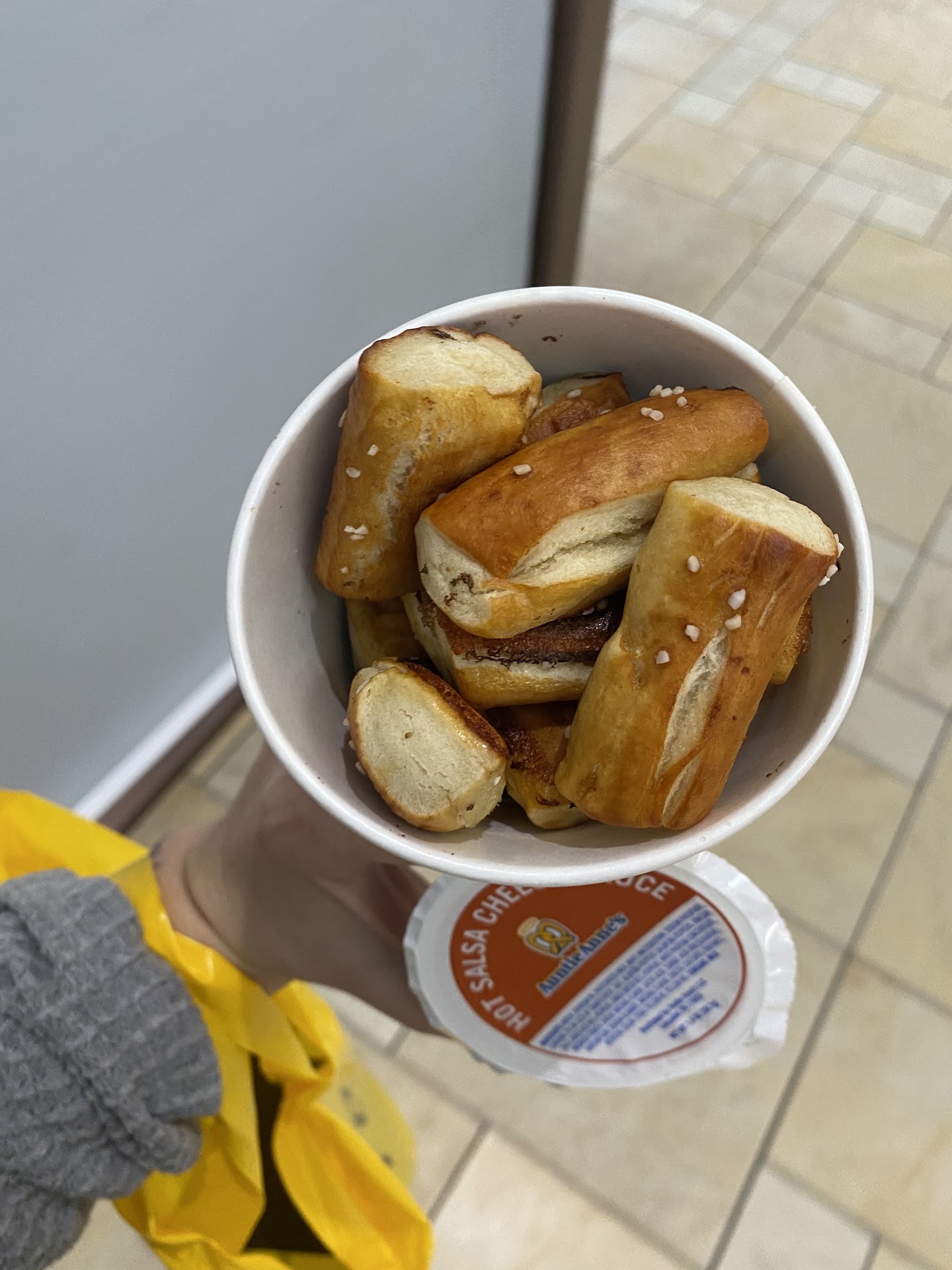I just want to share with everyone that Auntie Annes in SMITHAVEN MALL catered my party and it was a hit! Everyone loved all the different pretzels flavors they had. I must say my favorite is the Sweet Almond a must try! Sour Cream & Onion another awseome one.. Just a few of my favorites. Mini hot dogs in a pretzel who doesn't love that! Great idea for a party if you want to do something fun and different. More importantly the staff is so nice and helpful. They even let us sample a couple of different flavors.. So, with saying that go take a ride and try them...