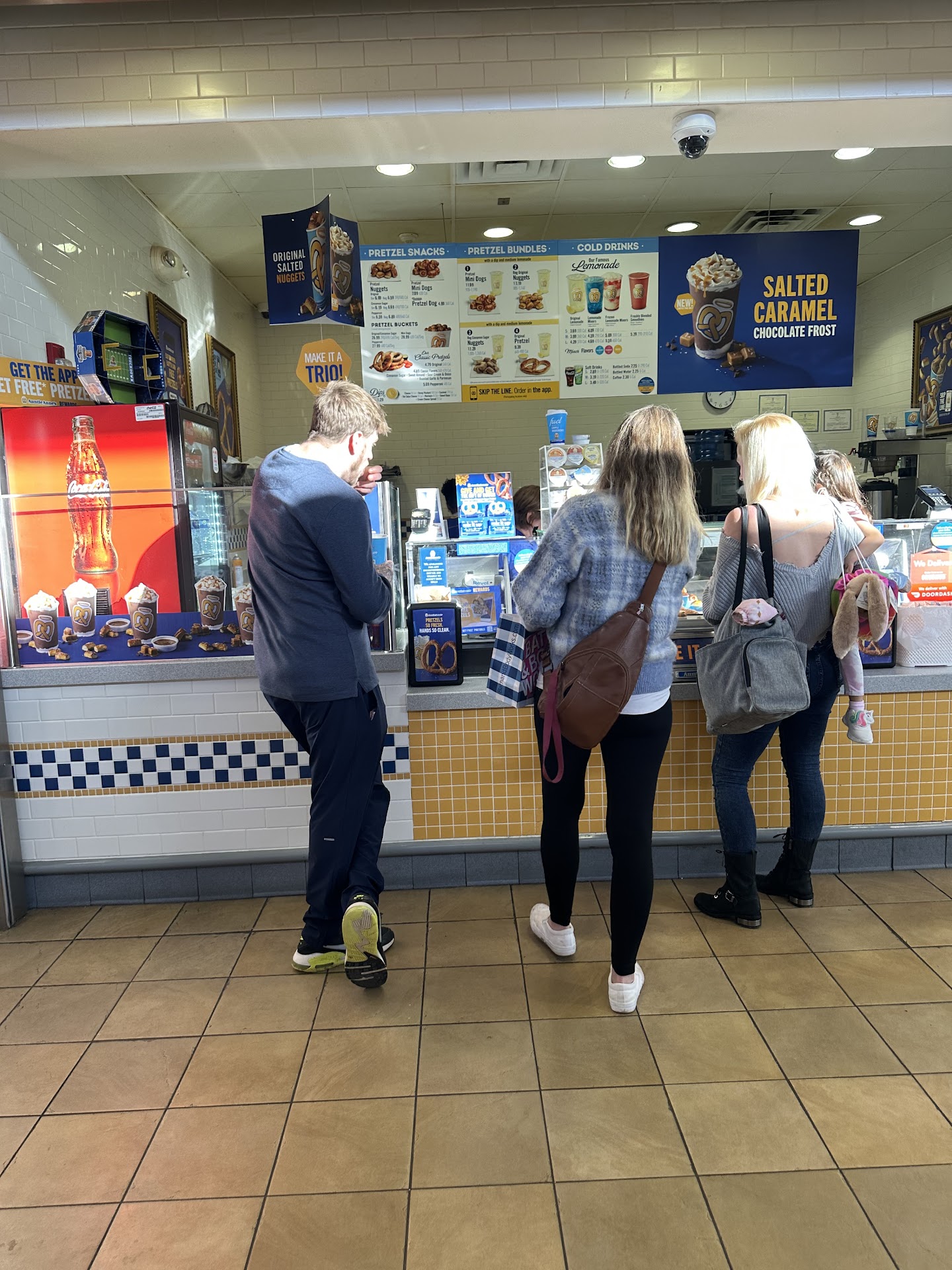Read moreHorrible. Was just at location in Smithhaven Mall long island. Was at the one by the Macys side. 3 people working. Only 1 was helping customers. 1 was making pretzels. And the 3rd was doing nothing. I was 5th on line so I walked away after seeing only 1 person helping. This was at 347pm. Check your cameras for the...
