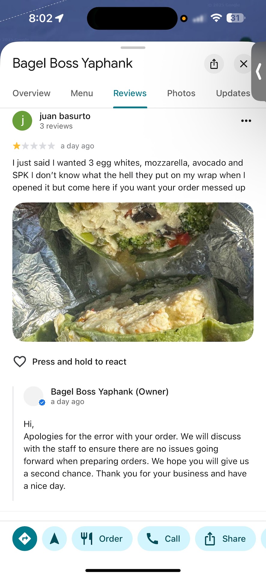 Read moreFood prep hygiene issues. The person initially handling my bagel had no gloves on and had been using the cash register and everything else in the place and then handled my bagel. She then put it down on a counter where there were boxes and pens and all sorts of other paraphernalia. then another girl put on gloves and started to make my bagel. sorry folks too late for gloves at that point. I complained to the manager and he gave me a hollow apology then refunded my money upon my request. It's a shame because this is so close to my house but I will never go back there. I'll just have to make the trip out to the original bagel Boss in Hicksville which is of course the best. Obviously this isn't the end of the world but who knows how they handle all their other food and I'm not worrying about hygiene every time I go in there. I'm supposed to go there to relax and have a good experience. This is the first time I ventured beyond the original bagel Boss. I know there are other locations closer to me than Plainview/hicksville but I will never go to another location again. Original can't...