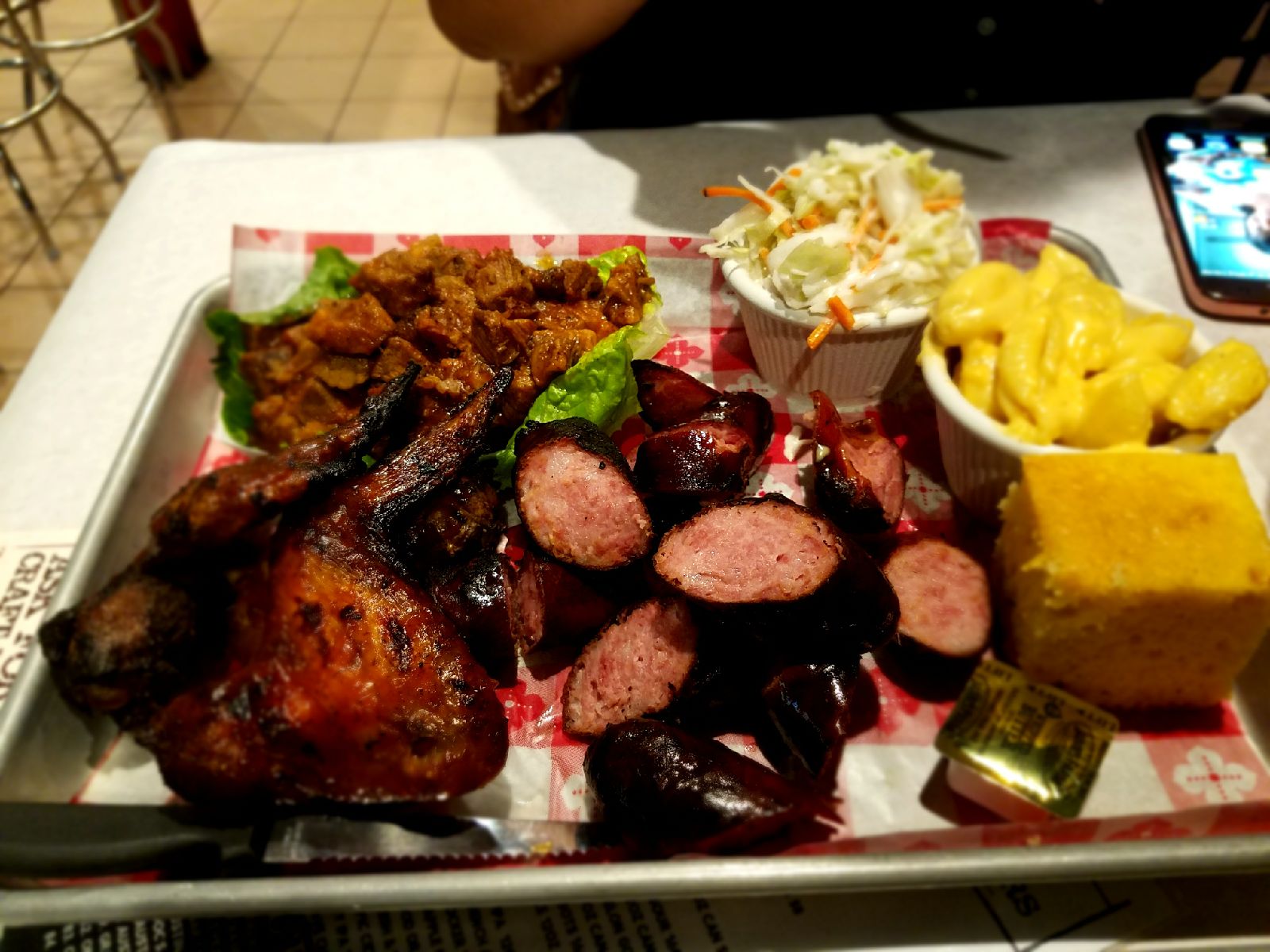 Beyond unacceptable. The 2 meat combo for $30 is less than enough for one person.I paid an extra $2 for “white meat” not even a quarter size piece of chicken. There were 3 ribs that were burnt not charred. Beyond a sad soggy excuse for barbecue. When you call and let them know that everything is soggy from their poor choice in containers, they tell you, “yeah our food doesn’t travel well.” I don’t get how that is acceptable! Get different containers or don’t deliver! The food just looks unappetizing too. I have never been so appalled by the complete lack of care when we called to inform them of our disappointment. I will NEVER order from this restaurant again nor do I advise anyone else to waste...