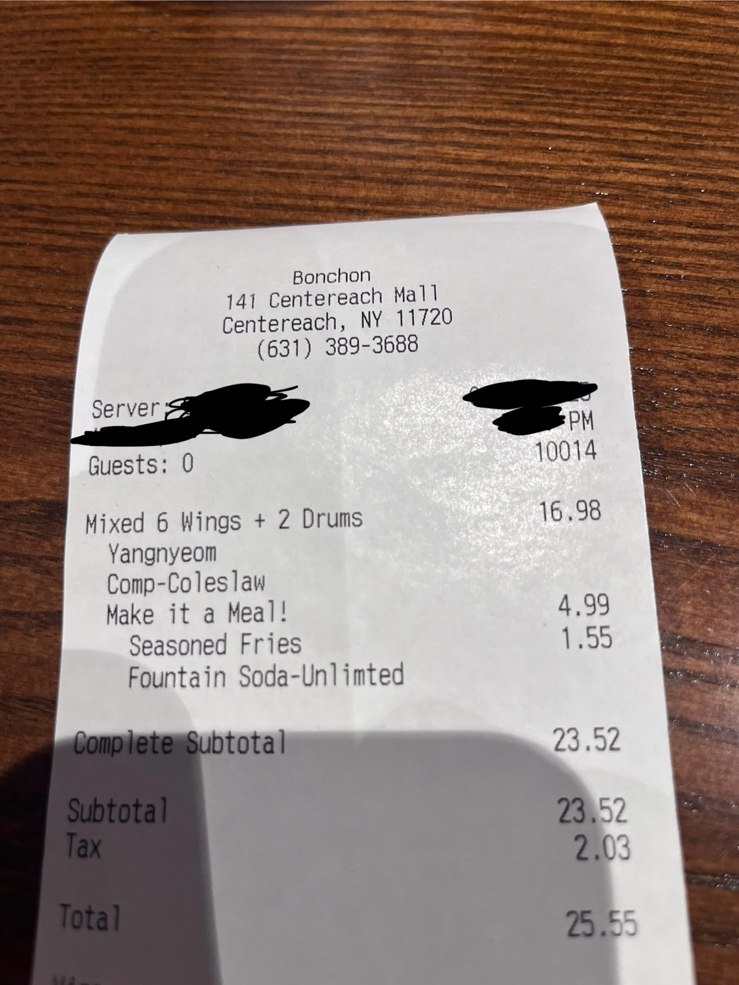 Will definitely give Bonchon Centereach more chances and will recommend to others, but that they’ll need to be patient.