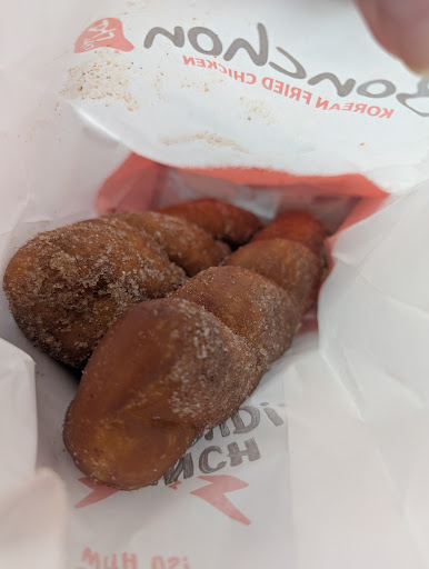 Food: I enjoyed the food, my family, not so much. I ordered a six piece wings, eight piece drumsticks, and Korean doughnuts. The four sauce selections for the chicken are good and I enjoyed them all, especially the yangnyeom sauce. My family thought the chicken was over breaded, and although I agree for the wings, not the drumsticks, to me both were good. The doughnuts were also good, fresh, and soft, and came with a little sauce packet.