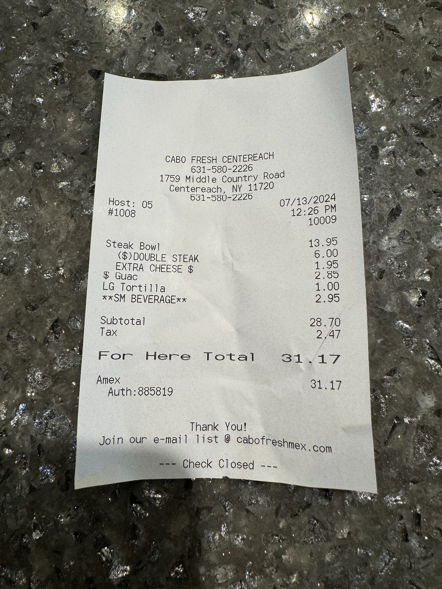 Read moreIf I could give 0 stars, I would. This location is the saddest excuse for a Cabo Fresh. I've given it 3 different chances and it has progressively gotten worse. Management is too incompetent to train staff, employees walk around clueless and ask you 10 different times what you wanted, they only fill up your bowl with about 10 tiny pieces of meat to entice you to get the double meat which is overpriced and a massive rip off, the food tastes different and gross, the lettuce is 50 shades of brown and slimy...I could keep going on and on but I think my point has gotten across. I actually had to check multiple times that this was Cabo Fresh and not an imposter. Genuinely disappointed with the food and quality of service. If the Lake Grove location is too far for you, just go to Chipotle or Moe's. Far better quality than this joke of a location. Back to Lake Grove for...