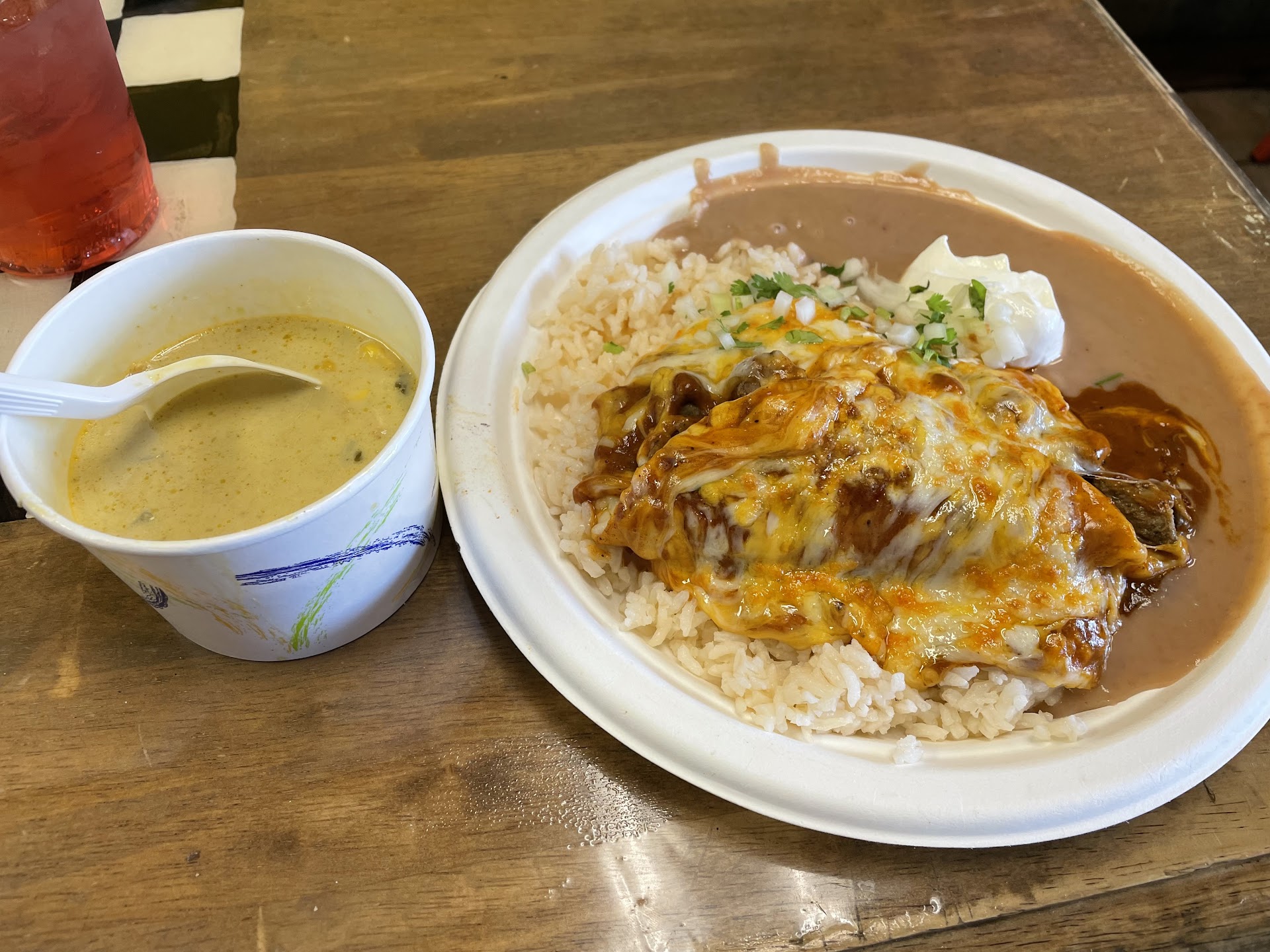 Read moreThis place was the go to place when me & my friends went out, but i went there a few nights ago and was very unhappy about the meal size we got a few things and portions were way smaller and barely filled me & my friend who were used to the size it was a few weeks ago, none the less we just only ordered burriros to find out that they were literally â of the size for the same menu price,i usually have trouble holding & biting the burrito but what i got fit in my hands & easily fit into my mouth that had a small layer or beans akin to taco bells shame of a bean cheese burrito, & my friend got pork with less meat than you'd get in a pizza and was even more unhappy about his meal ; it'll be a while before me my buds and there & our friends will go back to this pace, what a shame i really liked this place until this experience, someone posted a picture of what their burritos used to look like now imagine ĂŻt 2 thirds less in size that's what me & my buds got, I'm not sure if bidenomics that got to this place or if it was for another reason id like even less, a month or 3 back my friend saw and heard the cashier who's there every time we went their since whisper to the cheff that we didnt tip before we got our take out meals (as far as i know your not supposed to tip on take out) we ended up waiting extra long for our meals simple meals people behind us in line had got their meals quicker. We both dont have much funds which is why we liked coming here but if we're getting spited because of a lacking tip on our end we will never come back here with our friends or...