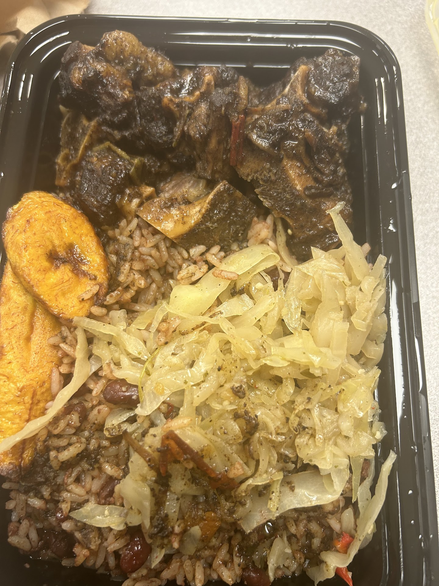 This place hurt my heart because I desperately wanted to LOVE this place! I was sooooo happy to see my culture food local to my job! The drive thru is amazing! So I had to return to make sure I was fair. First day, I got curry goat! I was told Large was the only option. I spent $40.00 in which I thought thatās a bit much with drink/patty. Was sure to tell the best host āeasy on the rice and more cabbageā they complied and we spoke briefly of establishment. I told him Iād leave a review. This day was rice, cabbage and a lot of gravy & bones! Hurt my heart⦠Not the money but I knew I had to leave a review. Decided to return for REDEMPTION! Told the same host my experience and from my opinion he shouldāve maybe offered a discount but I got oxtails and this time a medium was an option with a patty and drink! Despite it being a medium, it was oxtails and it was still $30.00 for rice/bones, cabbage with plantains (not ripe enough for me) I think itās stewed for so long that the meat falls off the bones and they pile it up (well not really bec the portions donāt really match the price for me. Patties were delicious. Unfortunately, I wonāt be back here unless itās for a patty. Dinners are too pricy to be paying for rice. One last thing, asked for extra gravy and I had to circle back itās like gravy is gold and they donāt be trying to give it up! All and all I wish the establishment well but after 70$ spent Iām not satisfied outside the patty! I forgot to mention ALL of the gravy, rice, cabbage was good and the tif bit of meat, that was available was flavorful and good. They just need to pile up the way they love to pile that rice on at those prices. Added pics to show you how much of my portion of oxtails was bones and the...