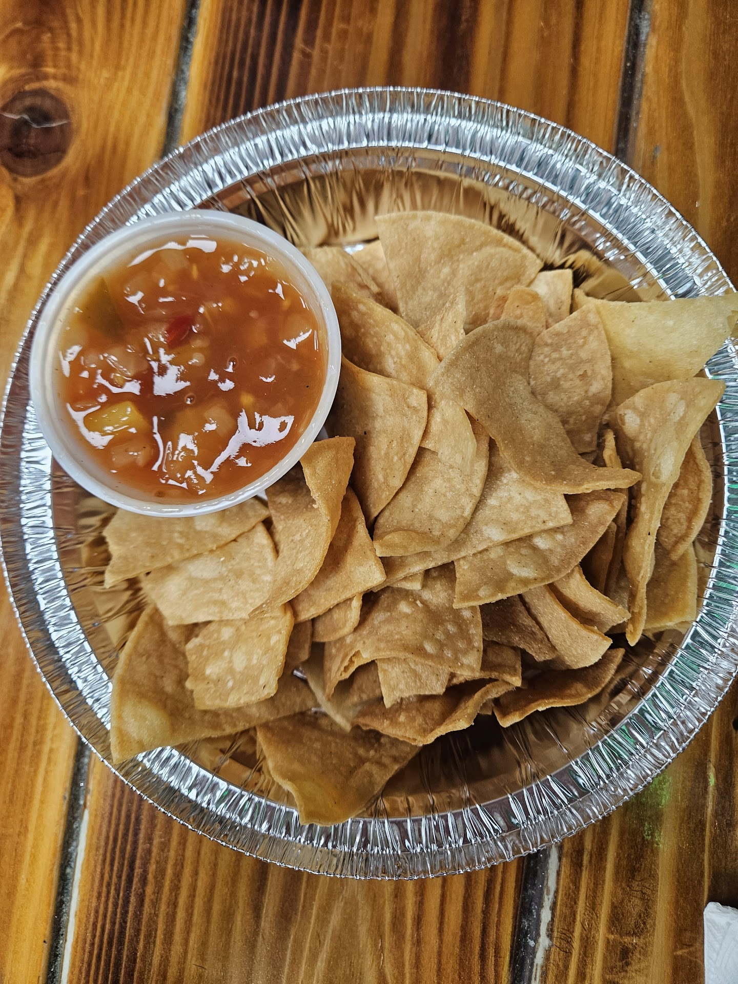 Chips are plentiful. Not exactly our families kind of chips. They're very thick, more like a Chinese noodle almost. But that's just us. They were incredibly generous with them (but we also ordered larges of the salsa, Guac and queso which come with chips).
