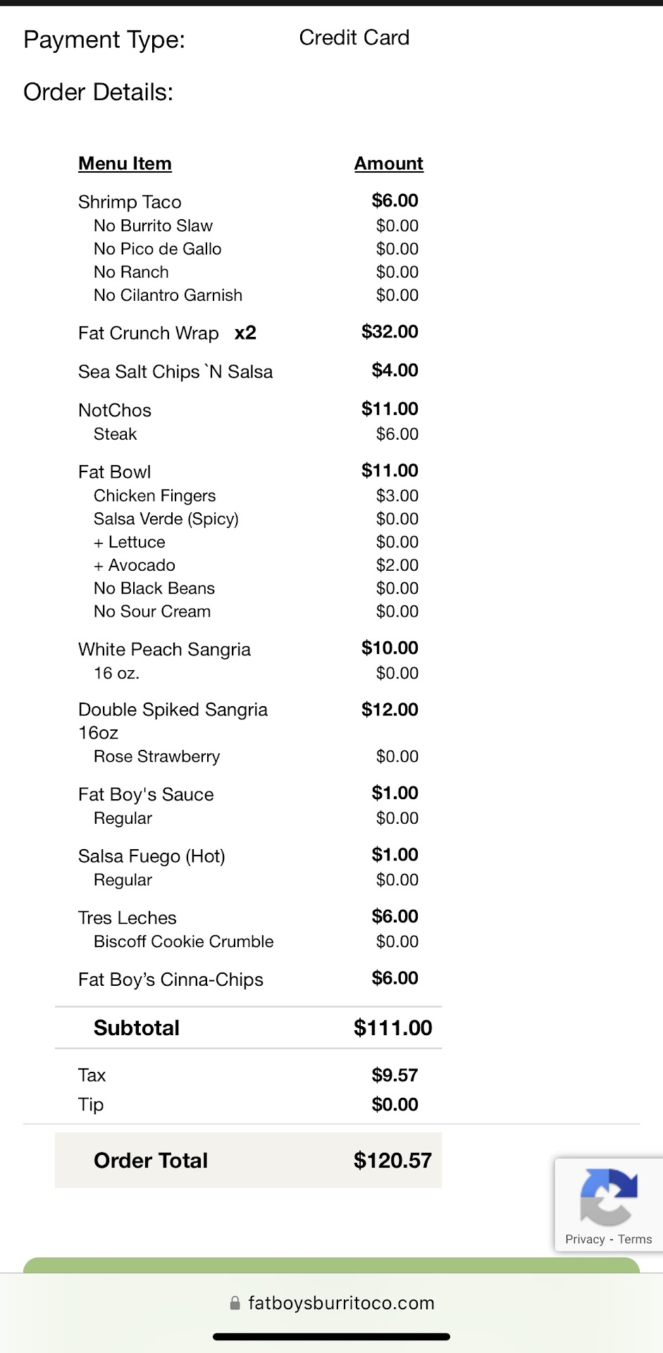 I placed a +$100 order last thursday online that i picked up. There was one large bag and one smaller bag that was labeled dessert, each bag was packaged and stapled so i did not feel the need to open the bags to check that all items were correct but i should have; we also got 2 sangrias. We were celebrating my sisters birthday so i was really looking forward to the tres leches cake that was on the menu. I opened the large bag to find that my nieces taco was missing, so i checked the bag that was labeled dessert to find my nieces taco (that was missing the pineapple topping) as well as the cinnamon sugar nacho dessert but no tres leches cake. I called the restaurant right away to let them know that the tres leches cake was missing and the shrimp taco was nothing but 4 shrimp on a tortilla. The man that i spoke with over the phone did not even apologize for the mistake instead he seemed annoyed that i was even bothering to call and let them know. He asked if i wanted to come back to get it which of course i did not want to do because the restaurant was not that close to where my sisters house was. He reluctantly then asked if i would like a refund or if i would like a store credit to which i stated that i would prefer a refund. He said “okay my staff will do it a little later.” It is now a week later and i never received my refund, and when i called the store to speak with a manager today I was told “call back later the manager isnt available right now.” Clearly fatboys does not care about customer satisfaction, i feel like i wasted money that could have went to a deserving small business owner with quality food. We ordered 2 crunchwraps that were mediocre to put it nicely- they contained romaine lettuce that was wilted and disgusting. My girlfriend got a burrito bowl that was missing the salsa verde that was suppose to come with it so it was completely dry. The steak nachos were decent but nothing to get excited over, and my nieces shrimp taco was not only pathetic looking but the shrimp was tasteless. We also got 2 sangrias that tasted like cheap wine you would find at a grocery store. I never write reviews like this but ive also never had such a poor experience before at a place that i was so excited to try at this location, i have had fat boys once before at their bellmore location which i enjoyed. Dont waste your money instead eat at any of the other restaurants on main street you will be way...