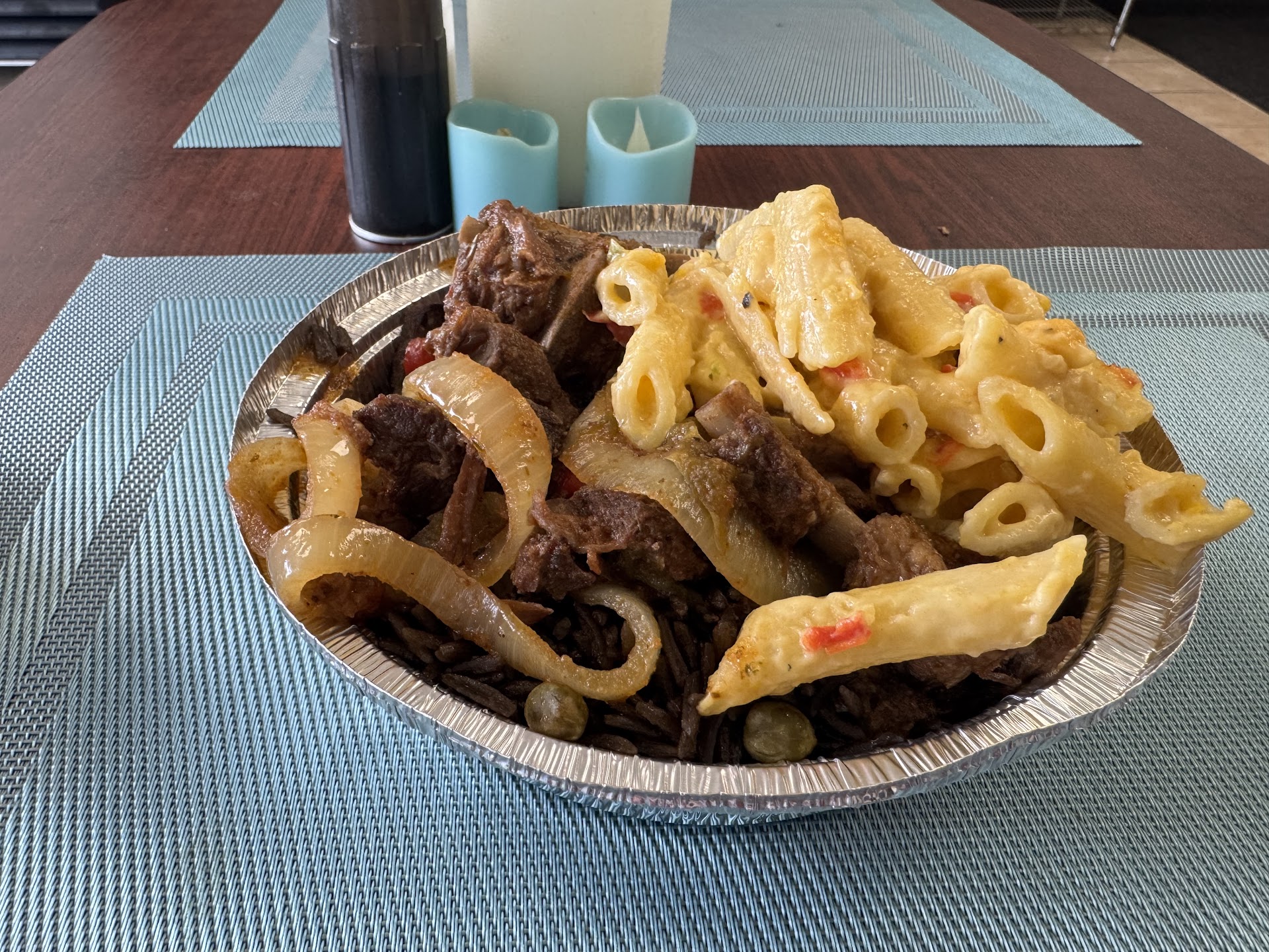Ordered fritay (2 fried pork) and 1 fried goat. Alongside, white rice, diri jonjon (mushroom rice), and red rice (rice & peas). Really did not like the taste of the food as it didn’t have much flavor to it. Very expensive for 3 orders it came up to 54$ and portion was very small. The wait time is even more crazy waited 1 hour for some food. Wouldn’t go back but good luck to the business. I’m from the City so I know what a good portion and full...