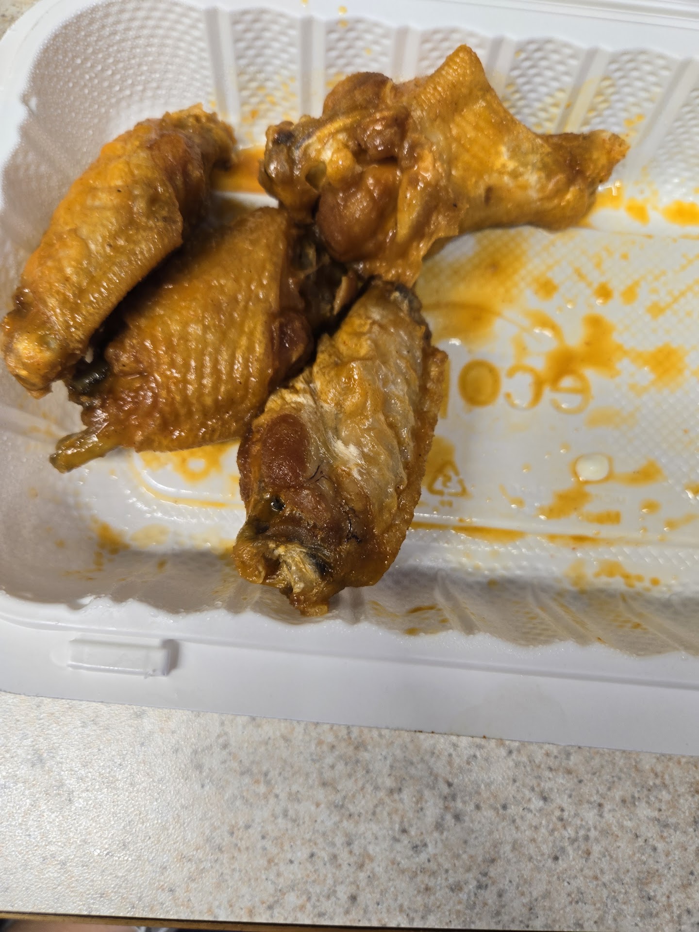I’m not one to place reviews….. but that being said … First impressions pulling up … banner covering the old sign ( ok new owners/ name change ) no fault there . Person smoking cigarettes in front of the store then proceeded to walk inside and behind the counter . So we walked in … 3 of the tv’s on the walls were off and black .. no music or any kind of vibe , bare walls and no theme . Tables and chairs dirty and in disarray . Walked up to counter , young gentleman behind the counter with his air pods in , no greeting or welcome . Menu screens are very dim and dark , so we decide what to order wings , loaded fries , tenders and 1 soda / 1 water ( not a big selection for drinks (btw) We sit down after we wipe down our own table . , Food comes out quickly, no cutlery , no condiments for wings , no plates or food baskets to share( gave us empty dirty food boats as plates ) . We had to ask for everything ! We started eating food was ok wasn’t amazing or to rush back . During this time the smoker from our arrival decides to eat his food behind the counter ( that’s a turnoff ) overall the experience was meh … my advice to the owner is to put a little love into your business , greet your customers and train your employees to somewhat care about...