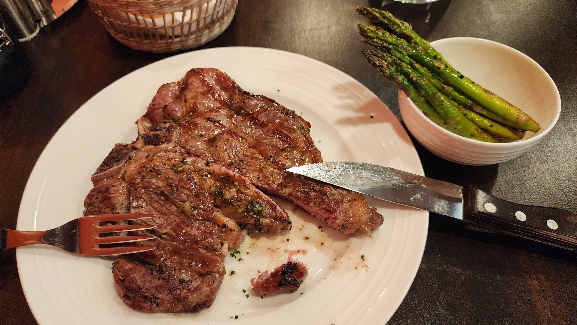 Read moreThe prospect of a decent restaurant in Ronkonkoma (outside of the two bars which have fantastic kitchens) that isn't fast food garbage, or pizza (Ronkonkoma has some of the best pizza on Long Island IMO) was too alluring to pass up! Place is brand new, nice atmosphere, very attentive service. Where I believe they are currently falling short is in being more "grill" than steakhouse. I mean this purely in regard to the steak itself. I do not believe they should be trying to emulate Insignia or any other overly bougie establishment (not in Ronkonkoma, that would just price them out of the market). I ordered the porterhouse, medium rare, which is their highest priced steak on then menu. The steak itself was seasoned well, but extremely thin and came out far more medium than rare. I would estimate this steak was around 1" to 3/4" thick raw, and I would estimate it probably hit the plate at around 139-145° F internal temp, definitely more in the "medium" range than medium rare. It's difficult to achieve the most commonly desired temp for beef (medium rare) on such a thin steak. The price on this steak (highest on the menu) was extremely reasonable, and perhaps therein lies the problem. I don't want to tell anyone how to run their business, but I believe some more premium steaks, at a slightly higher pricepoint, cooked more precisely, would be a welcome addition to their menu. Perhaps having both grass and grain fed as an option, serving 2" thick steaks vs thin ones? Also some toppings, like grilled onions or gorganzola cheese? Additional sauce options like a brown sauce, or a bearnaise? (The chimchuri sauce and salsa verde they currently have on the table are both fantastic!). I see a lot of potential in this restaurant. I will definitely return to eat at Holstein and wish them all the success...
