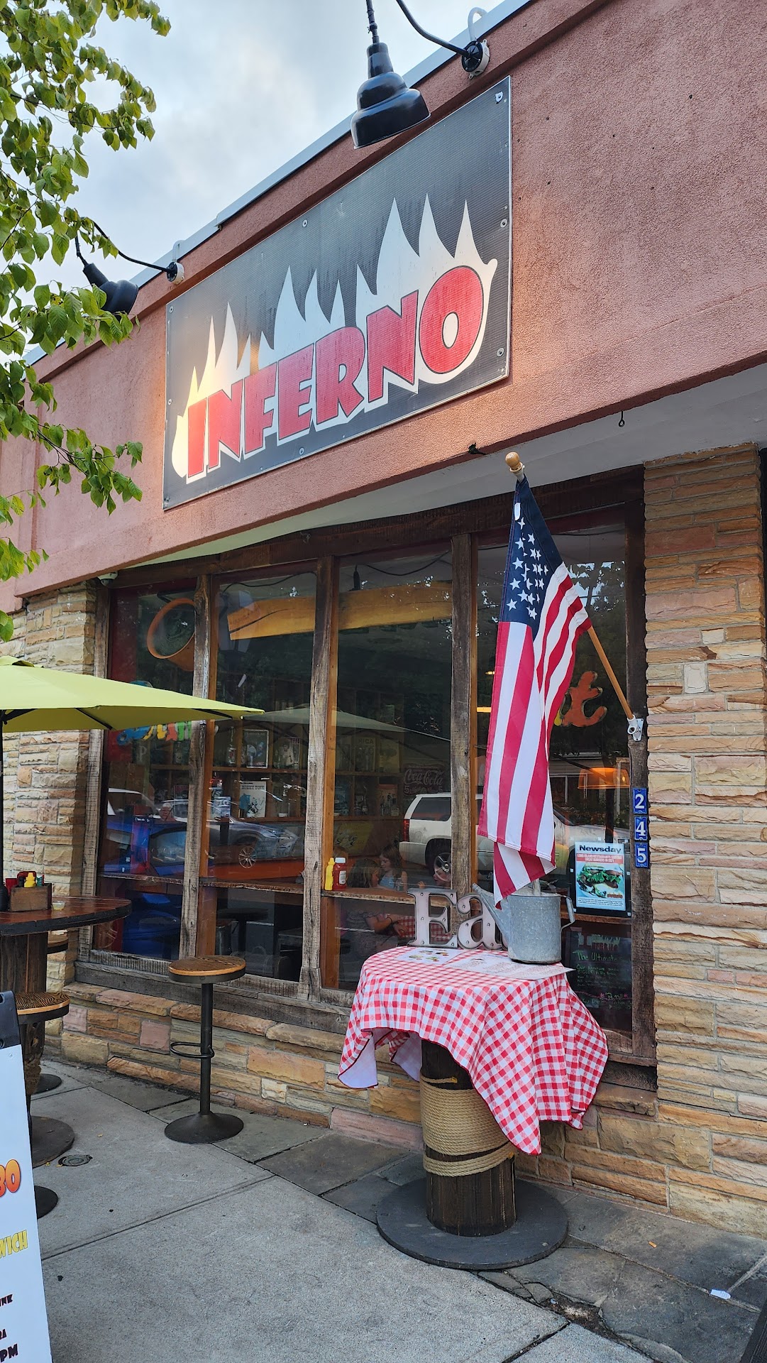 Read moreWhat's the result of an inferno?... Heat. Heat would be the result of an inferno. And maybe that's why this place is ok in the summer. But they need to change the name in the winter to Deep Freeze. Because in the winter this place is freezing. I mean it's the coldest place I've ever eaten in ever! Seriously they have these gas heaters in the place that might as well be fake. The place was so uncomfortably cold. If I was not with other people I would have left. The gaps in the doors were atrocious. I would not be surprised if they turn off their walk in freezer box in the winter because this place is freezing. Did I mention that's it's cold in this place? I'm not to worried about this review being a bit cold toward them as I'm sure they're used to it? It has ruined me for going back. I will tell you this I was there 3 times prior in the spring and summer and it was nice, but the sheer fact that they aren't reviewing how cold it is during the winter time tells me that they are more concerned with their comfort level in the kitchen vs. the customers. If it were me, I would sit in my restaurant dining room every few weeks to make sure I can stay on top of what my customer experiences. Gotta say I'm done here! Please in the name of sweet baby Jesus, please please please change your restaurant name anything but Inferno! Because you have the name Inferno doesn't make it...