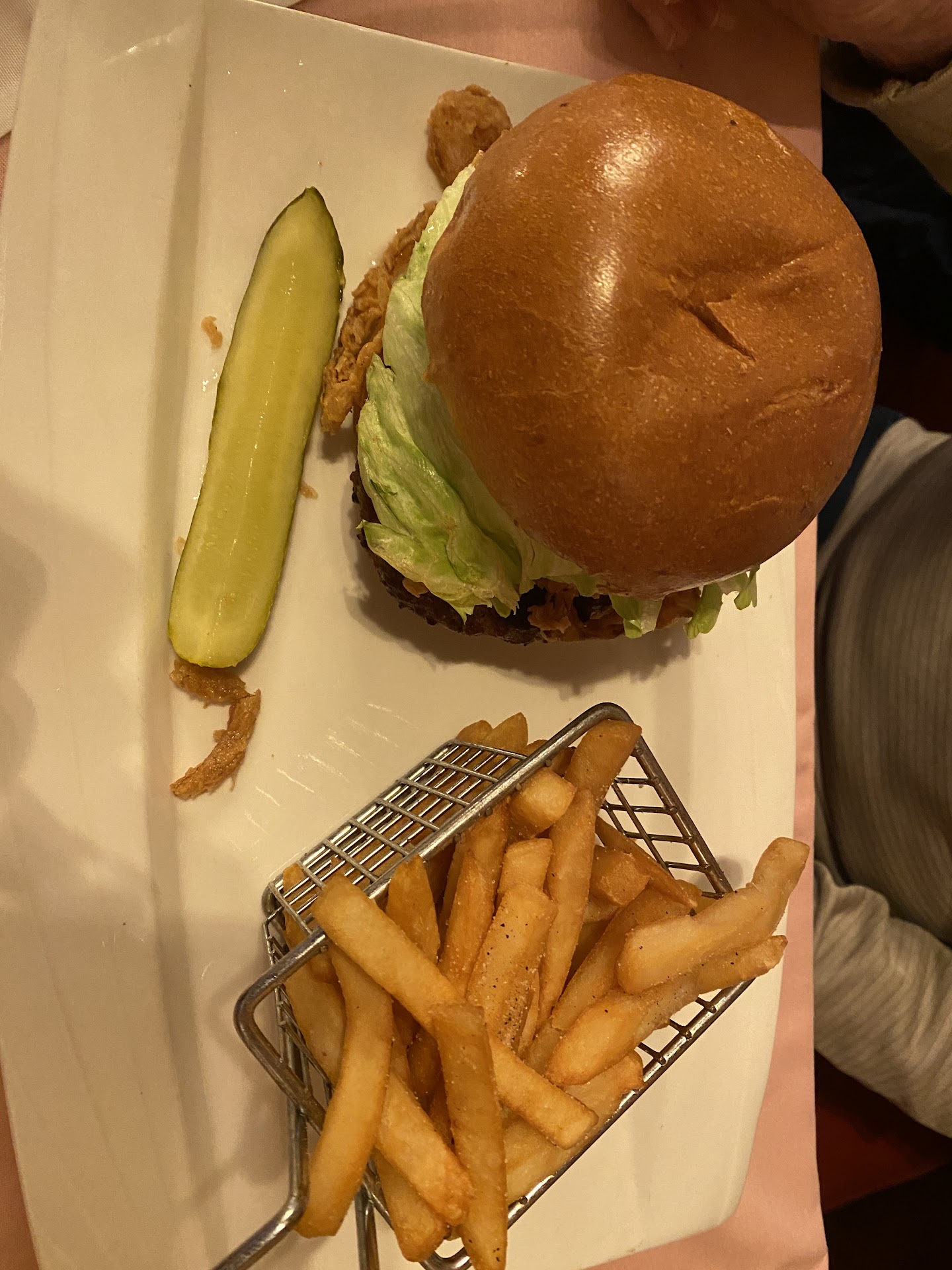 Read moreThis place is ok for dinner - just okay. We went on Saturday with a 7:00pm reservation for 6 people, not packed or busy. Music was too loud to have a conversation so we spent the entire time saying "what?" to each other. Ordered 2 kids meals of chicken fingers which were listed as $12 including side, drink and dessert. We were charged $13 each at the end of the night, and were charged for $3 each for the kids drinks. And they were the rubber hockey puck chicken fingers that even kids don't really like. Fries were basic and didn't even have salt on them. The adults at the table has steak, IPA crispy chicken, and Mac & Cheese. Steak was good. Chicken was bland - like zero flavor, not bad, just boring. Brussel sprouts - same, bland and boring. Mac and Cheese we asked for no bread crumbs, came with bread crumbs. Bacon in mac and cheese was rubbery and undercooked. Mashed potatoes were real mashed potatoes, just minus any seasoning at all - like potatoes, butter, milk, done. The waiter was very nice, but it was kind of slow service as we were there for almost 2 hours, which is only a concern because you have to pay to park in Patchogue, so you are playing beat the meter. Overall - bland food, slower service, check your bill before paying to ensure you are not getting overcharged. Not terrible, just not great...