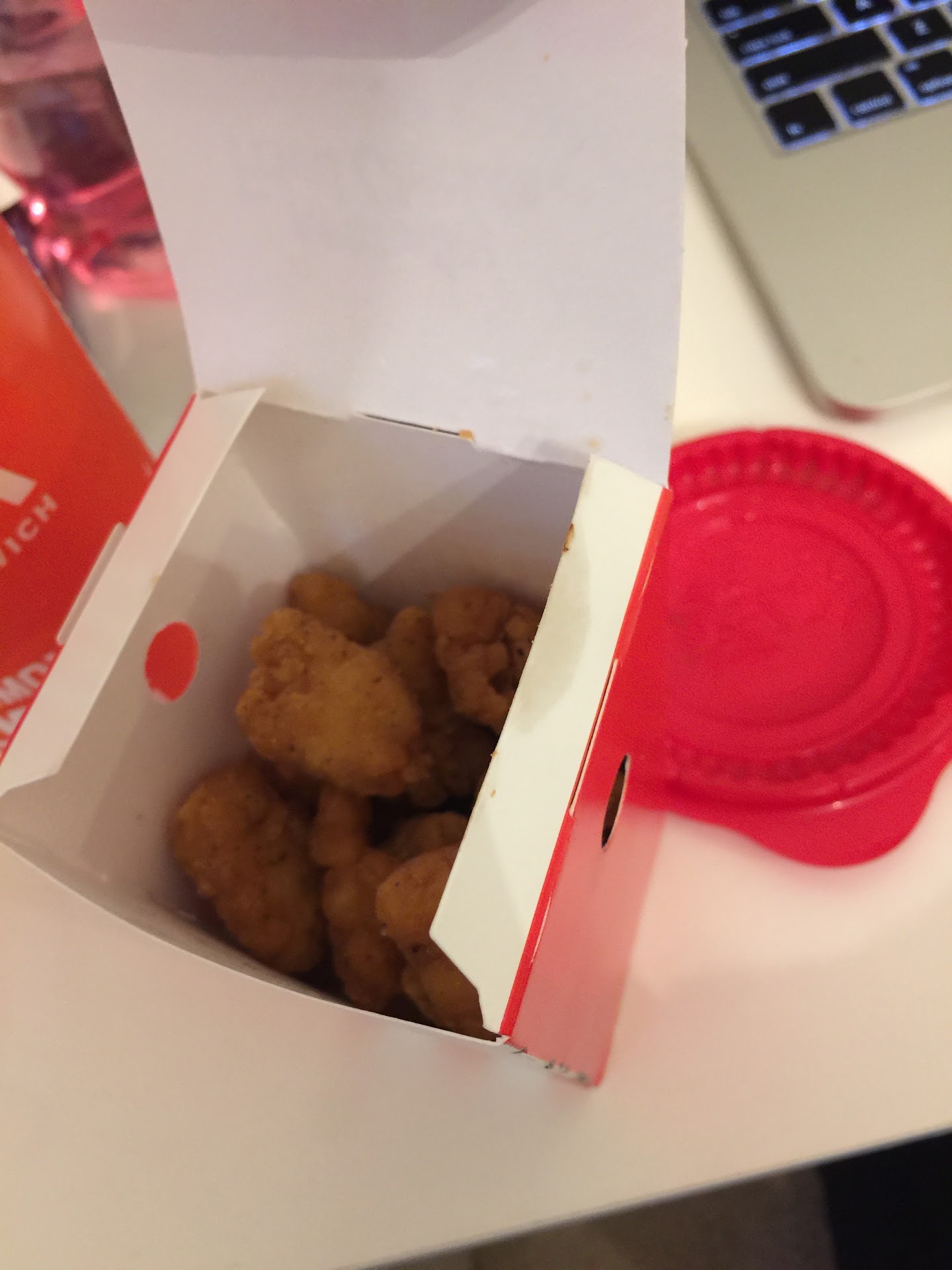 Store-made chicken. Snackers. Potato Wedges. Popcorn Chicken. Delicious Mashed Potatoes AND in reasonable portions, gravy to send you to "flavor town"...