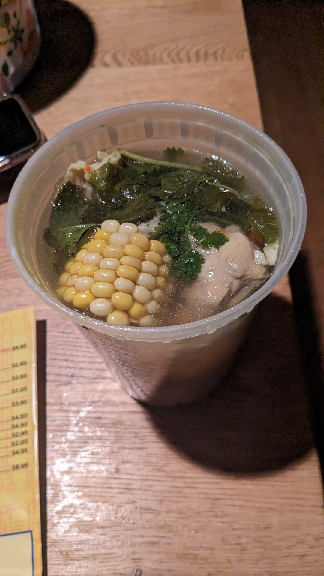 My biggest complaint is with the fish soup. For a $6 small, I got broth with a small corn cob, a single large carrot slice, two chunks of potato and lots of fish bones/scales. What little meat was present tasted good, but we live on an island and filets shouldn't be hard to find.