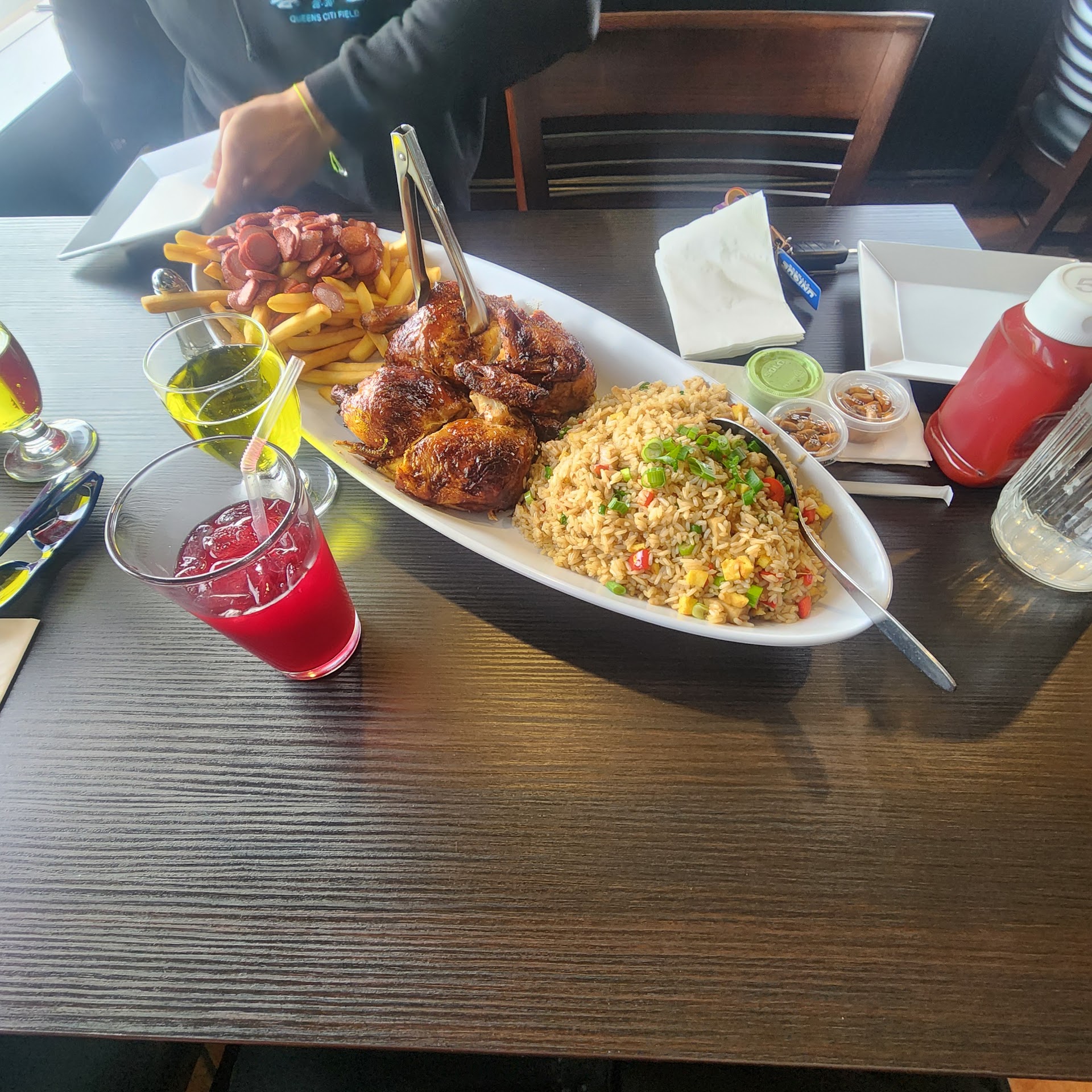 This special combo includes: âś… A whole Peruvian-style roasted chicken âś… Arroz Chaufa (Peruvian fried rice with chicken or pork) âś… Crispy papas fritas (French fries) âś… Salchipapas (sliced hot dogs with fries) âś… 2 cups of chicha morada (refreshing purple corn drink) âś… Inca Kola to complete the experience