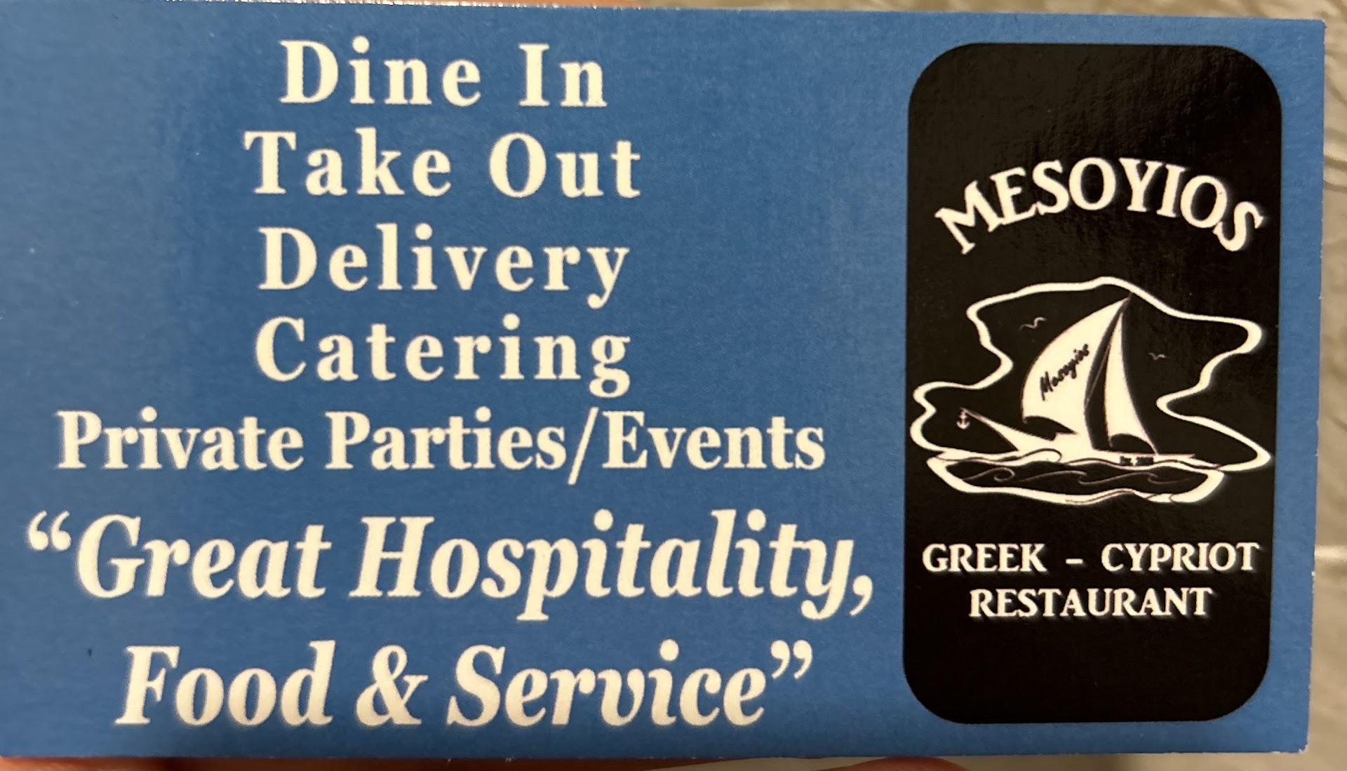 Another Dimond in the Ruff… My son chose Mesoyios as he loves Greek Food. My family and I make it a concerted effort to have dinner together after 5:00 mass on Sundays our schedules are all over the place all the other days of the week . Doesn’t mean we go out all the time to have dinner, just means we make sure we all sit down and eat together and enjoy each other’s company. My son’s Birthday was Saturday the 19, I asked did he want me to cook? Or did he have a place to out and eat in mind. He suggested going to Mesoyios . So, after Mass on Sunday, we went . It is Amazing to me how in the town of Ronkonkoma this quaint little family owned restaurant sits in the middle of the block almost un noticeable , very easy to pass it by without noticing its even there ! I felt like I walked into a family members home to sit and have dinner together. In this day an age, its rear to find such a welcoming atmosphere with quality food . We were welcomed as if we were family members. The decor is clean , comfortable, I loved the kitchen cabinet’s they chose to put up behind the counter where the patrons can see , they will remind you of home. The two coffee pots sitting on the counter, again reminding you of home . A+ for Atmosphere. Thank you Andreas for being such a welcoming host. Now to the food. As my family and I sat together waiting for our orders , I watched all the other orders come out, the dishes looked inviting and very tasty . The food presentation was also A+ . When patrons were done eating they all seem to be very satisfied with their meal and experience here at Mesoyios. Looking at all those meals coming out of that kitchen , I understood why it took a little longer than average wait time . When food is fresh it takes a little longer. You can tell by the way it looks, the textures, and of course flavors . I love that my son , now 27 years old cares about where he sits down to eat his meals . He looks for exactly what he found , a home away from home . Good food, Good atmosphere , all created by Good People. I absolutely love telling the world when I find a fabulous place to go. Some of us don’t have family to eat with everyday. You walk past Mesoyios threshold and you’re with family. You will enjoy every aspect of your meal, I promise you that. Blessings always to you at Mesoyios Thank you for loving...