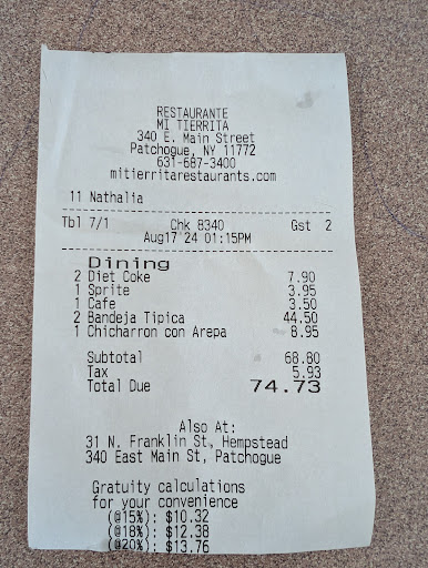 Just FYI, there are very few restaurants that I like in the Brentwood area. I may grab a bite at a bodega, but Mi Tierrita is delicious, plentiful, affordable, with excellent service unlike those in the surrounding area. Hence, it gets five stars. Give it six stars for the clean restaurant and clean restrooms. You won't be disappointed unless you were looking for corned beef and cabbage. This is not Anglo-Saxon cuisine. Try It, you'll like it.